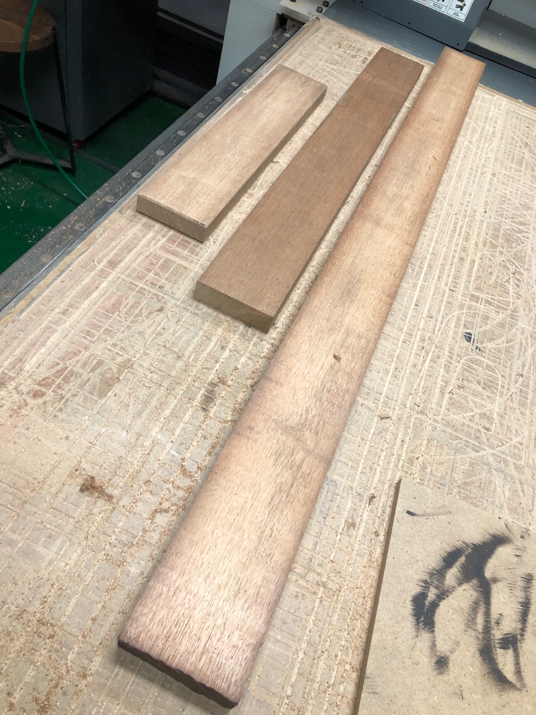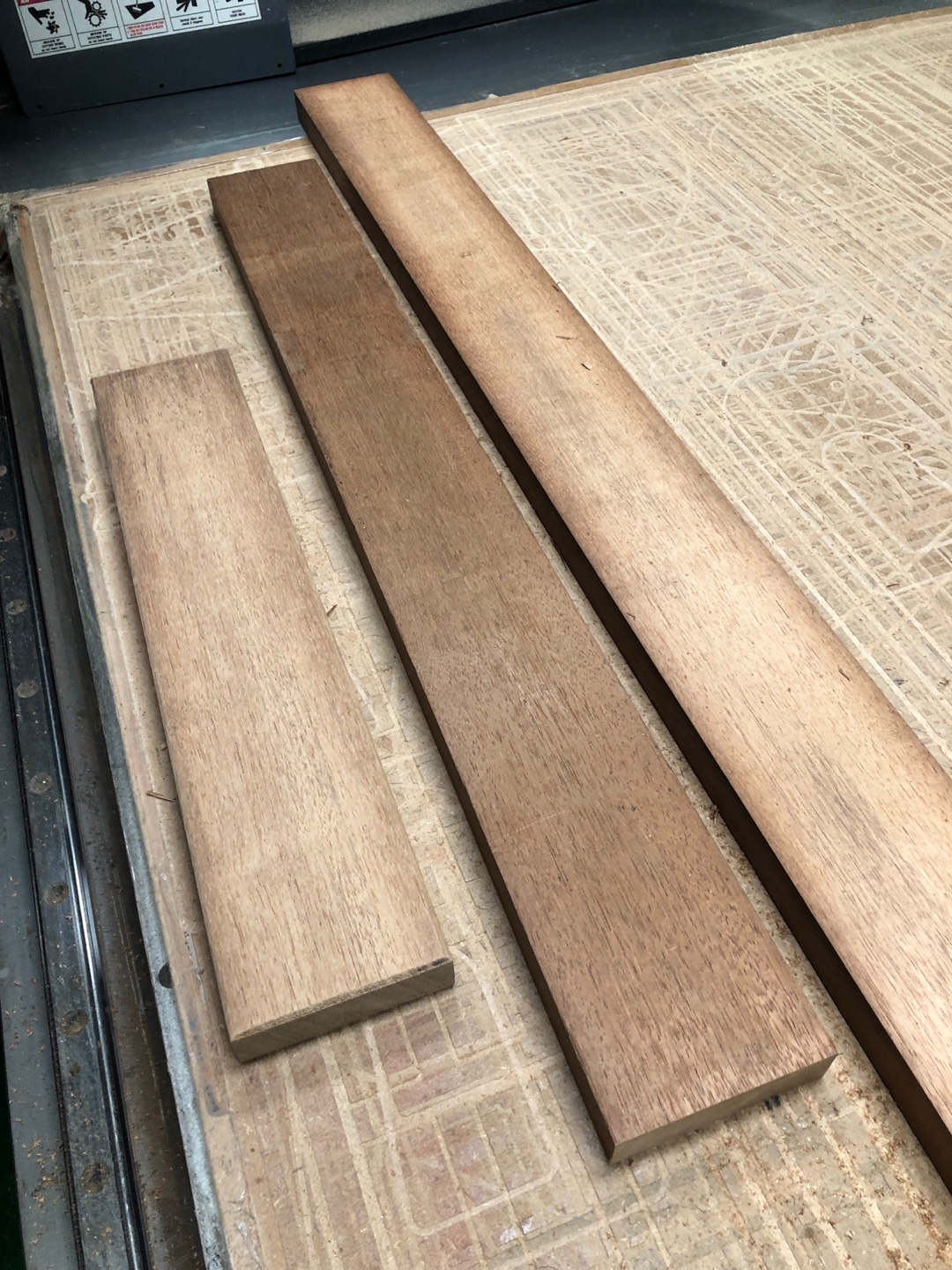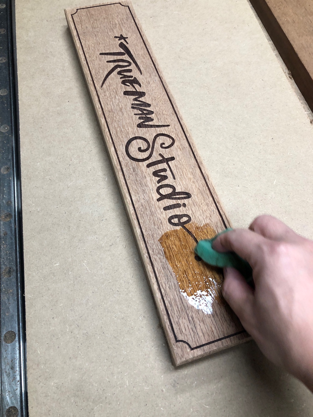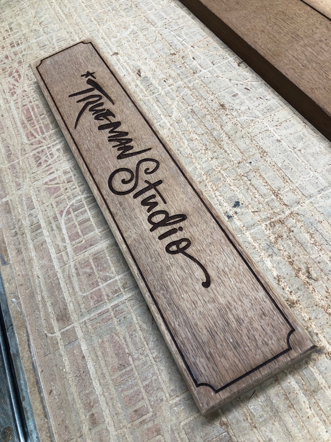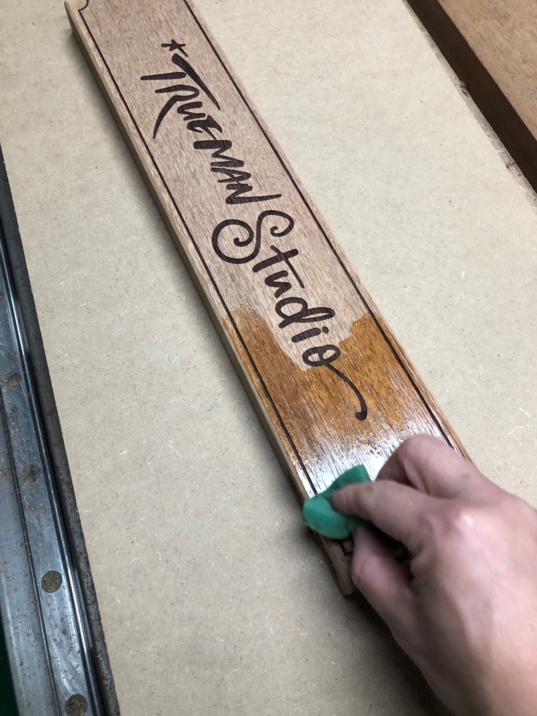 재단한 멀바우 목재에 손글씨 디자인을