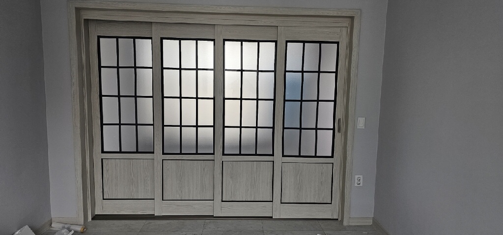 4연동 중문, 목단조 CNC가공 - 컬러보드 블랙