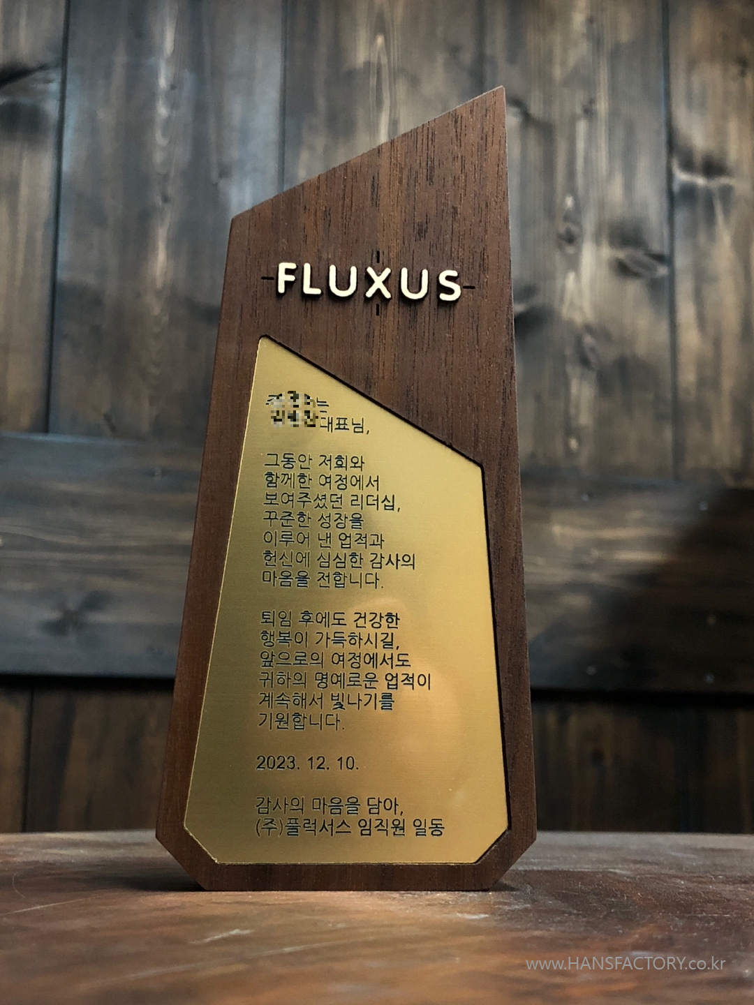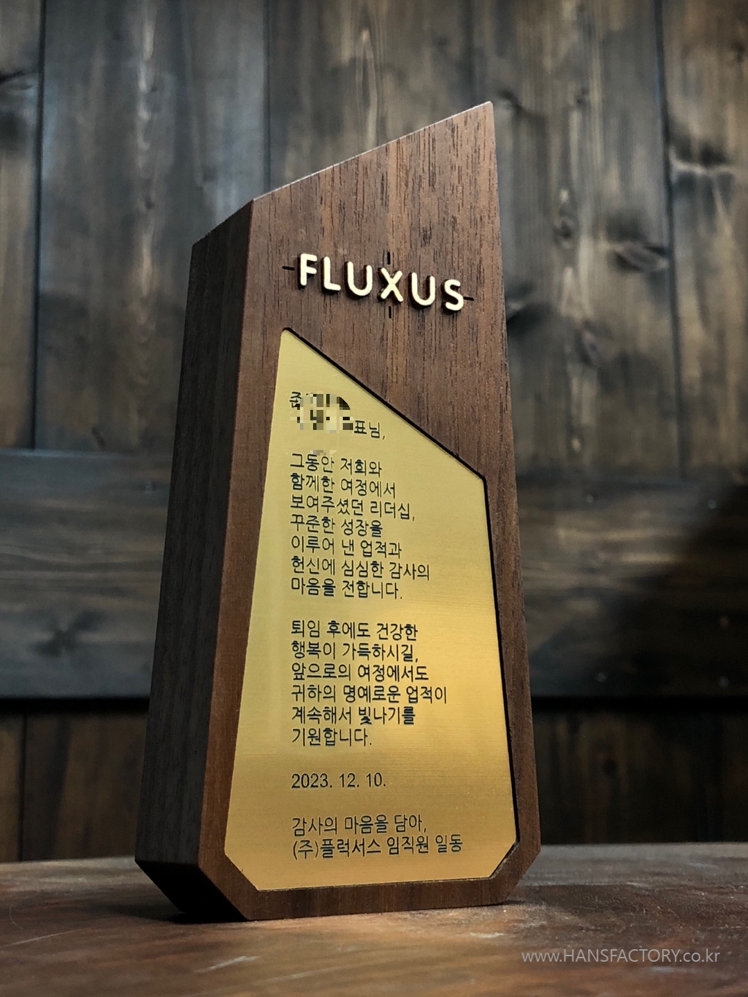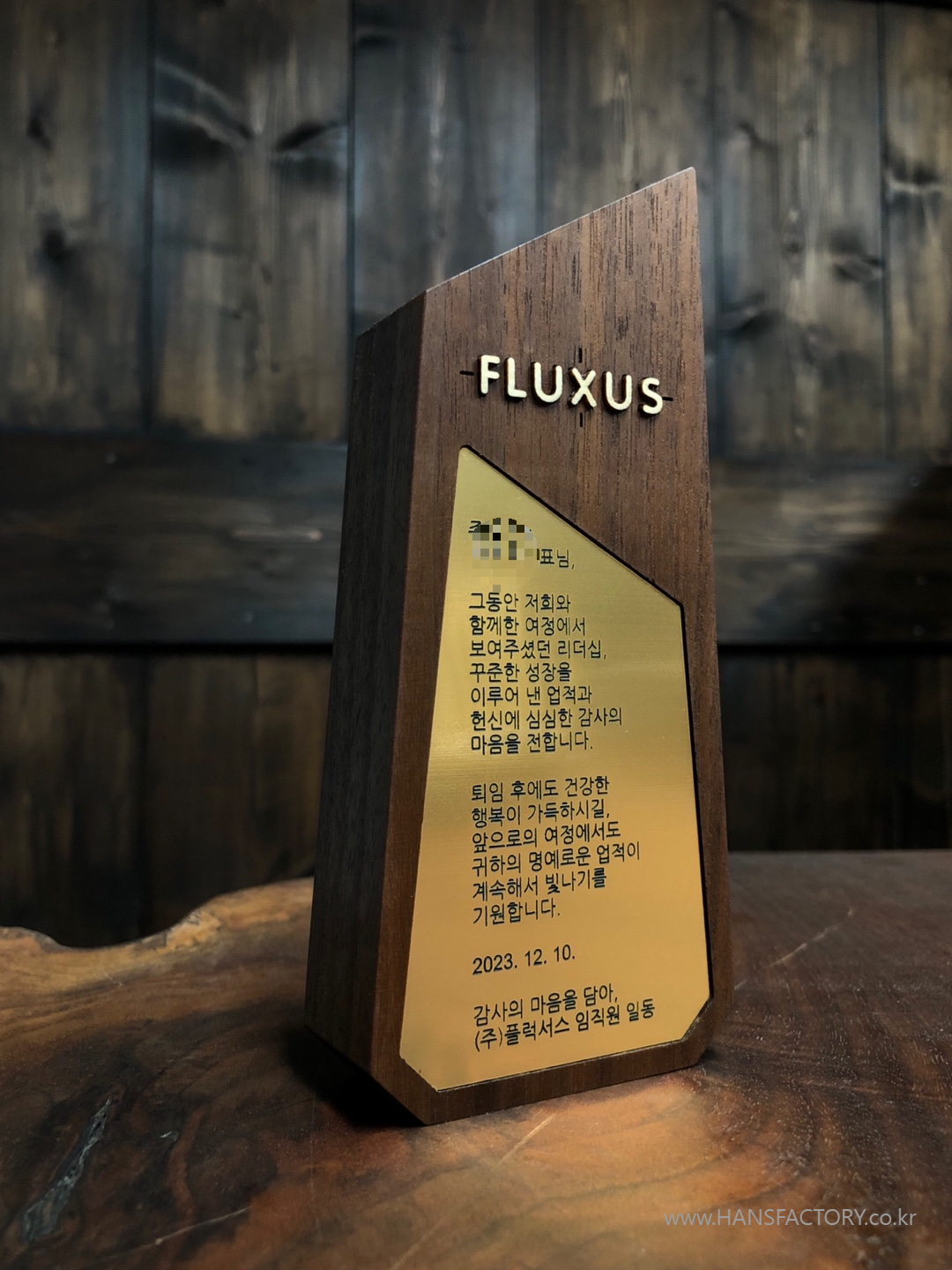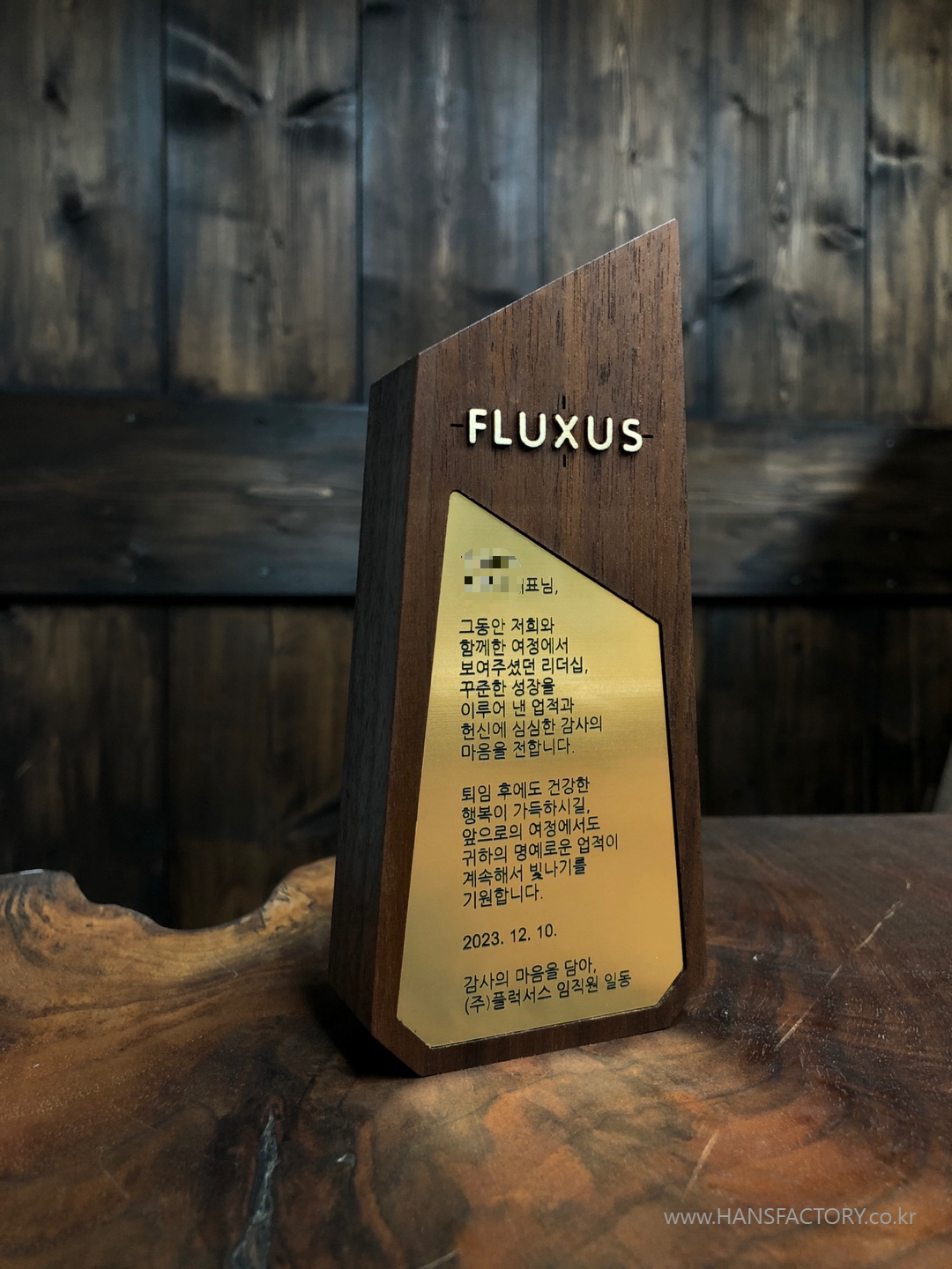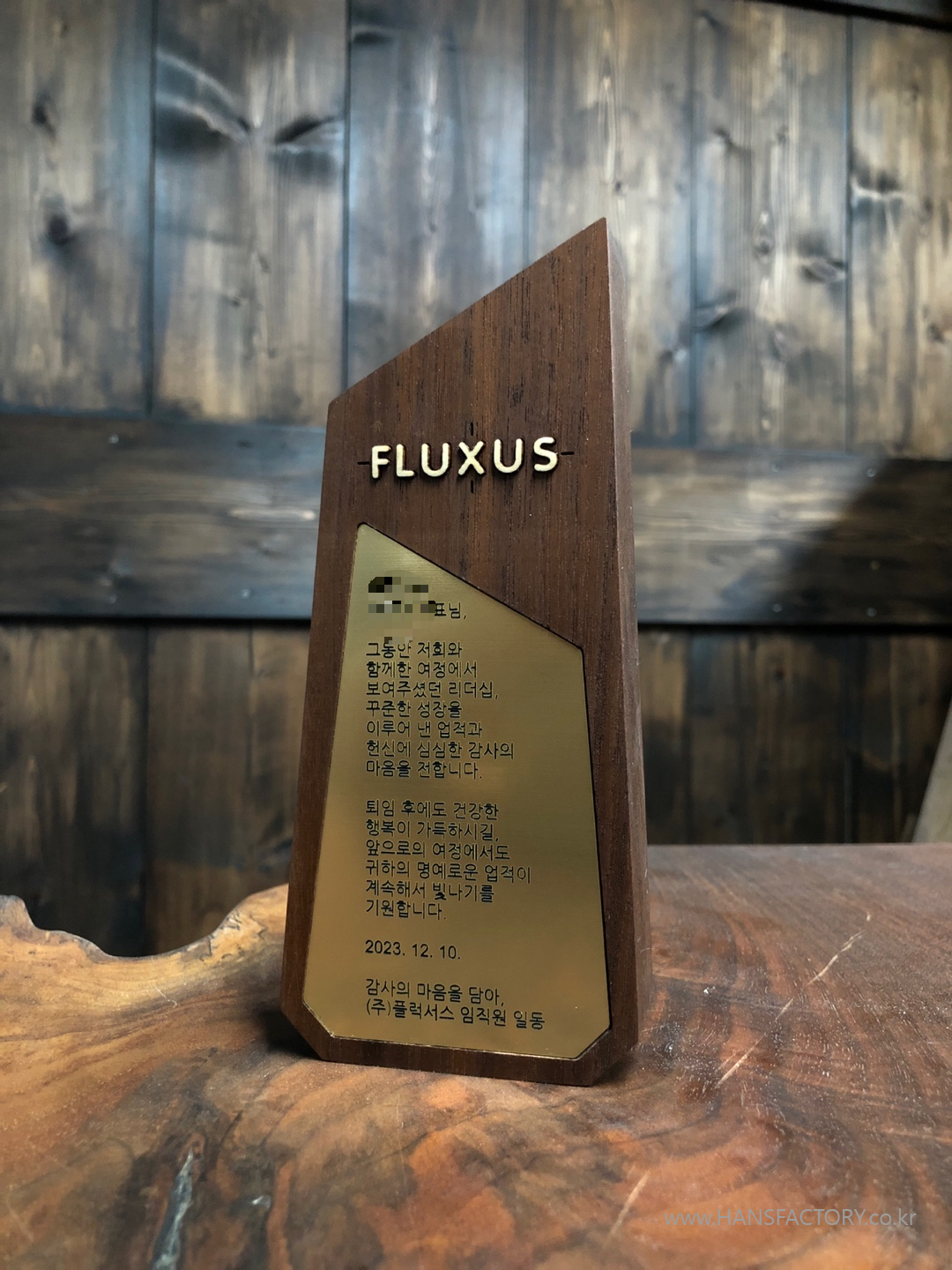 퇴임기념 원목 감사패 오더메이드 for 플럭서스 FLUXUS