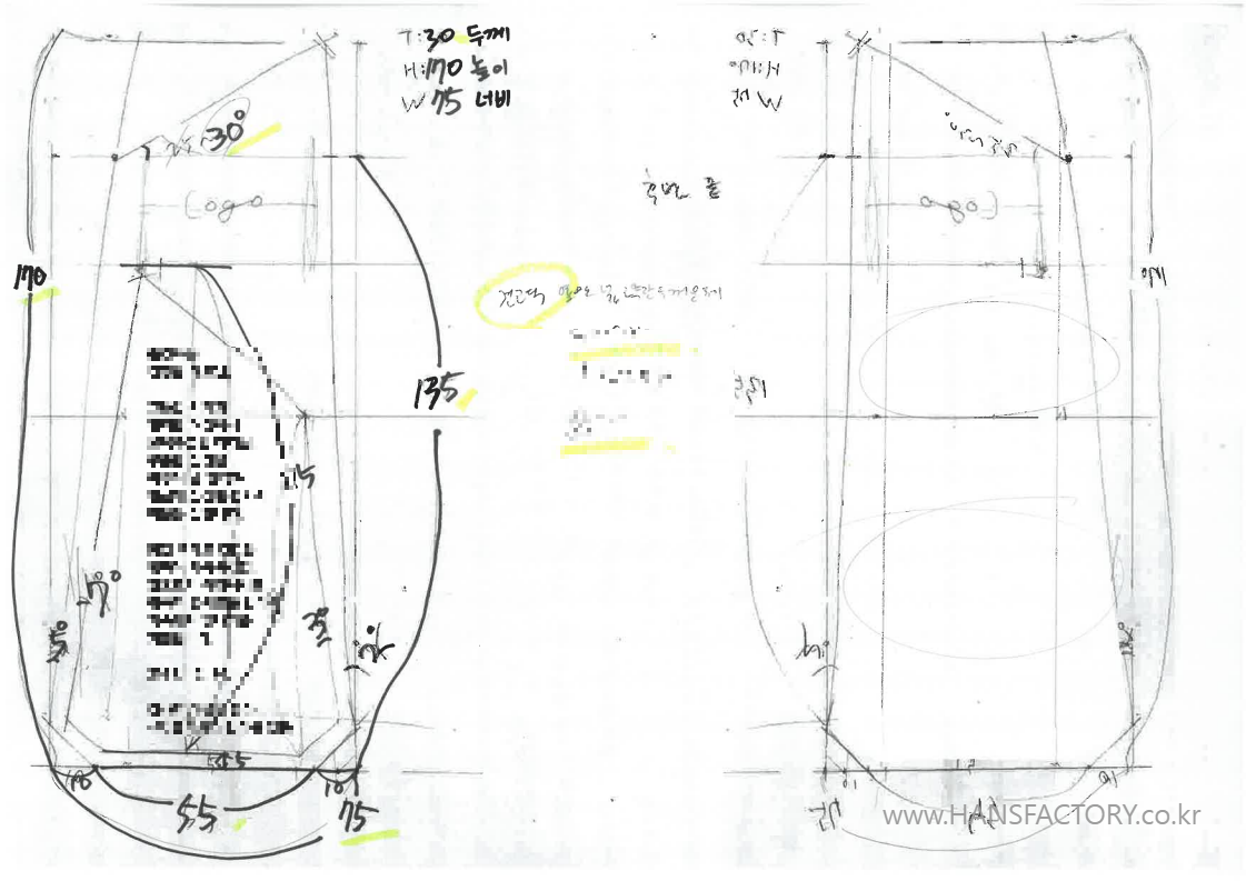 제작 요청 사항을 손수 그려서 스케치를 제공해 주셨습니다.