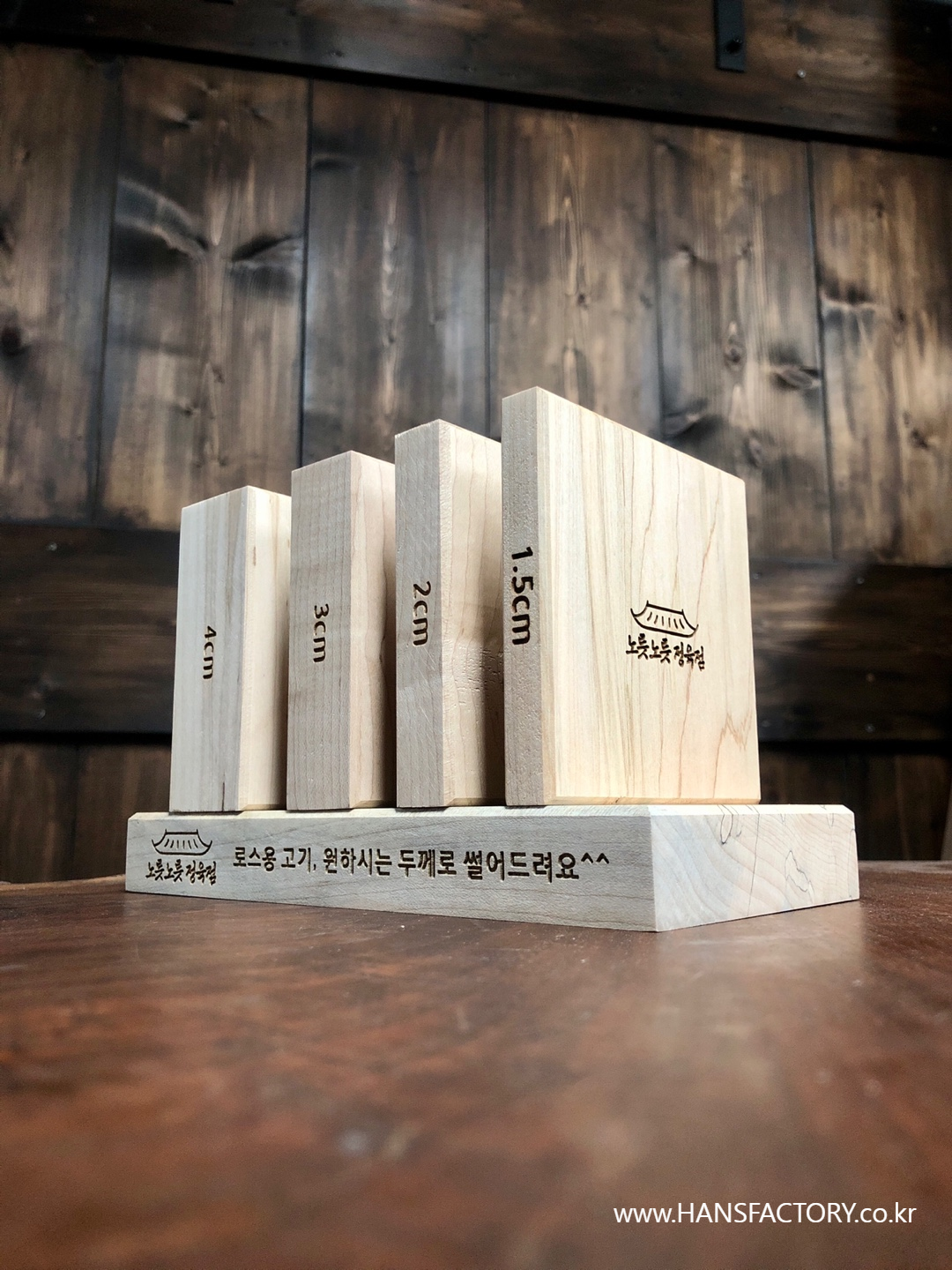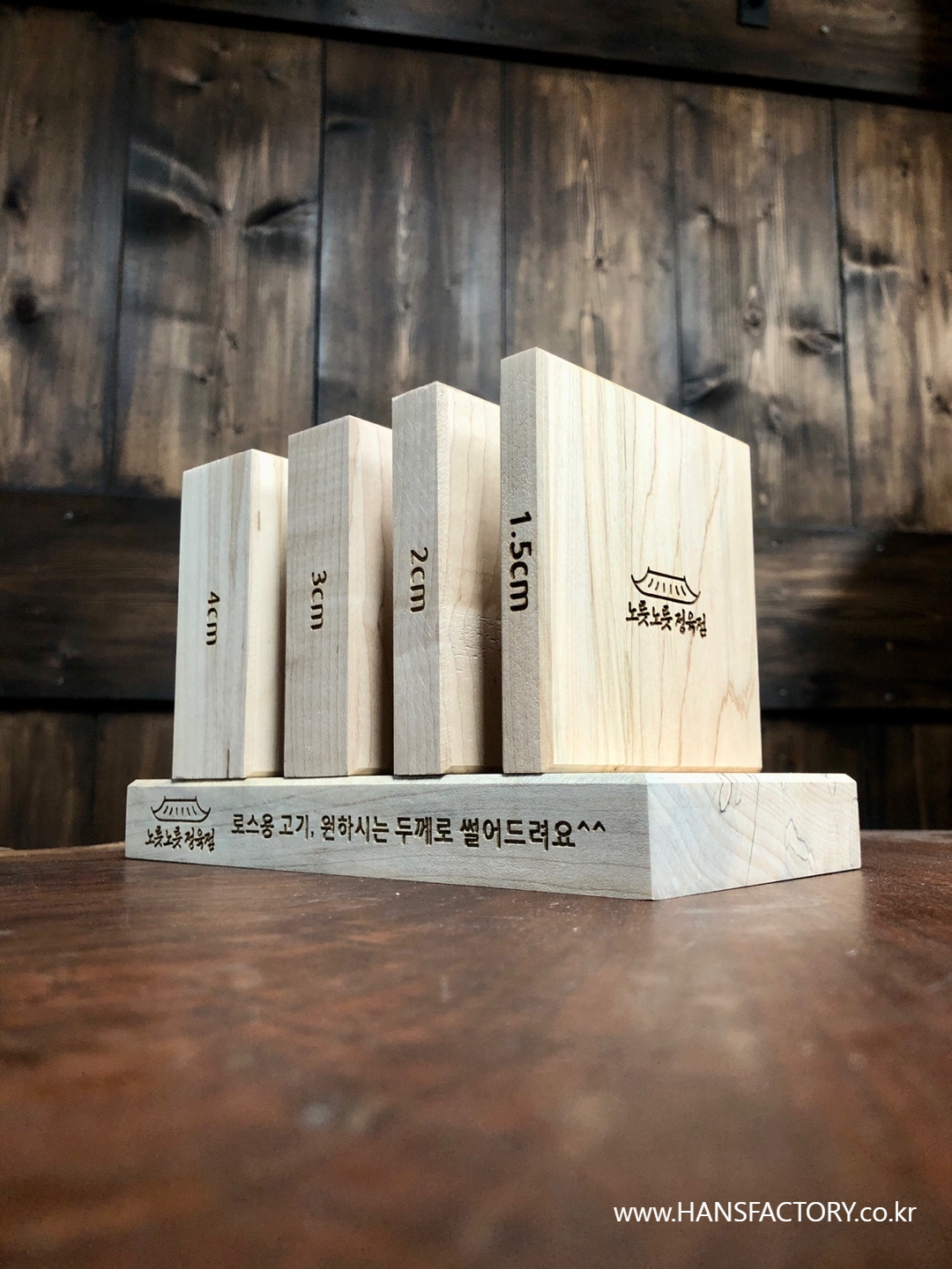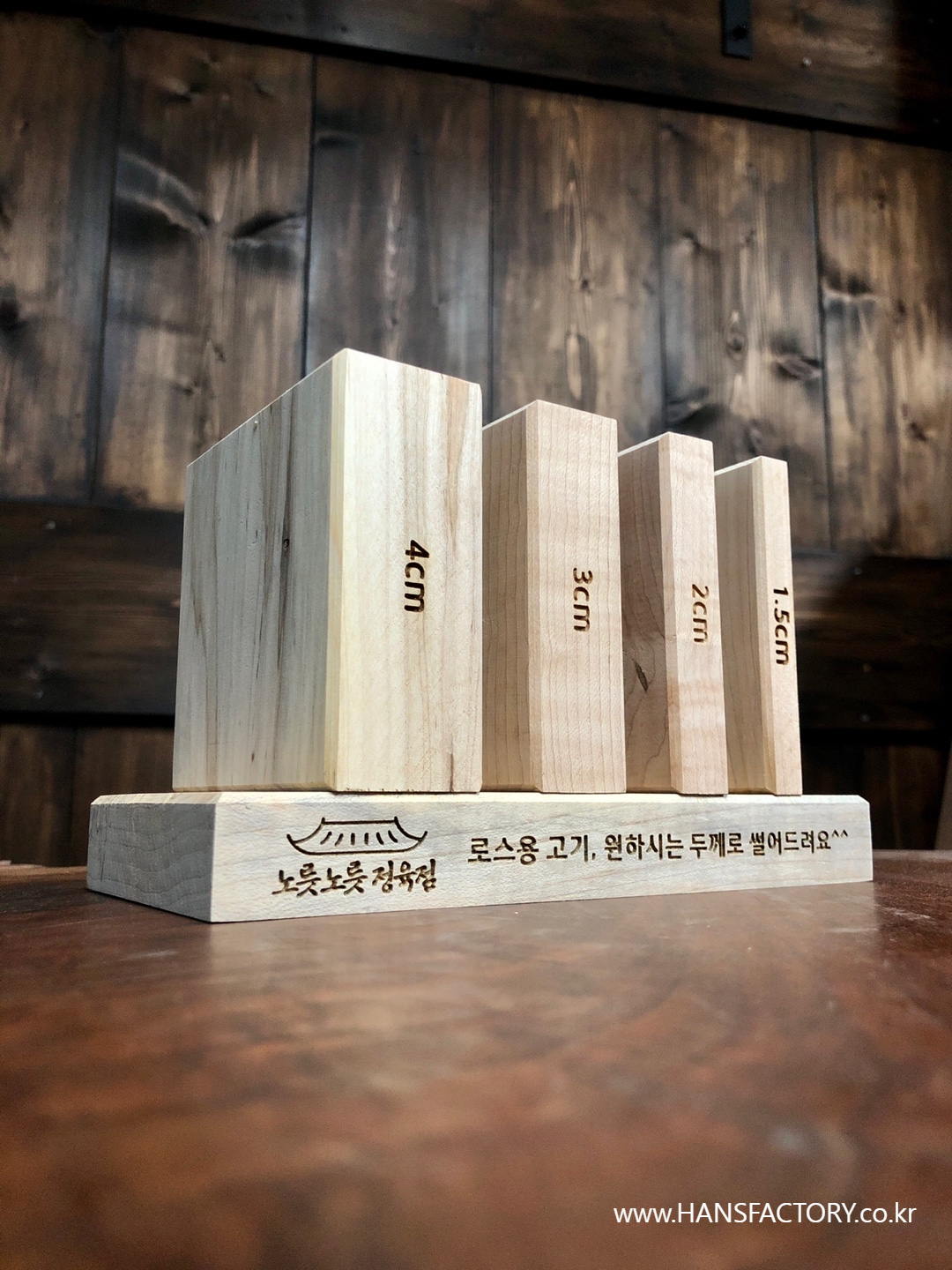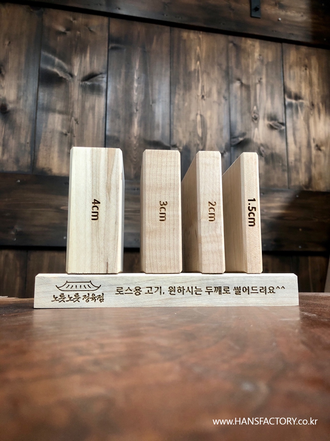 나무로 만든 고기 두께 샘플 주문제작 for 노릇노릇정육점