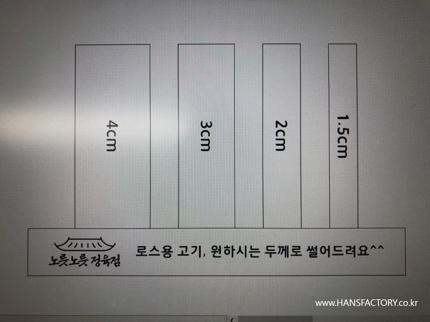 로스용 고기 원하시는 두께로 썰어드린다는 내용을 새겨서