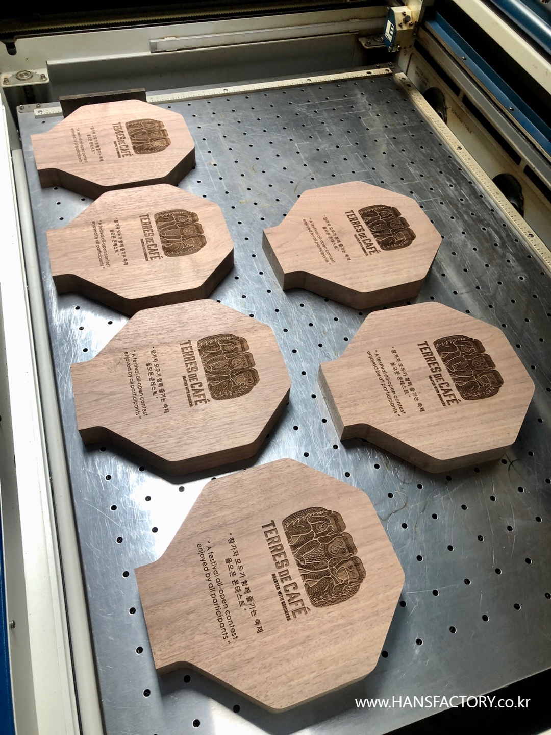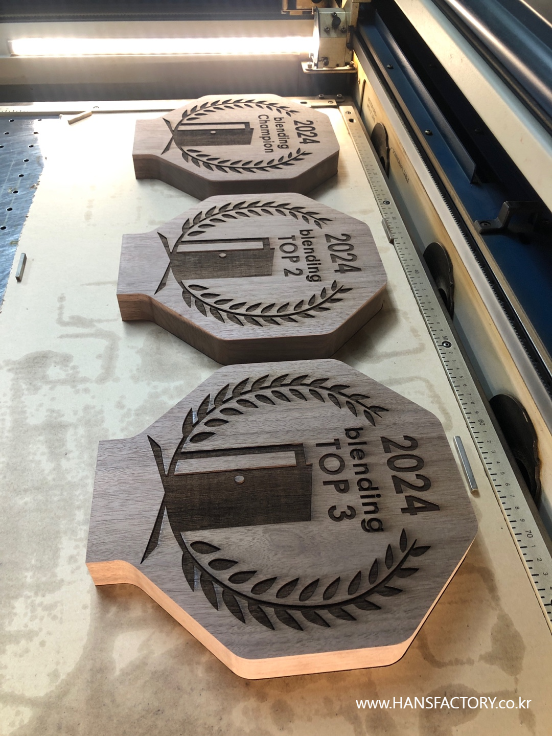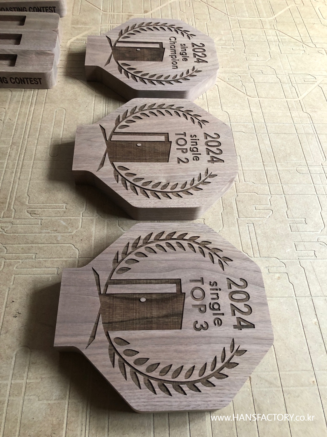 지난 시즌보다 트로피 수량이 늘어나서~~ 특 A급 월넛 원목을 두배로 준비했습니다.