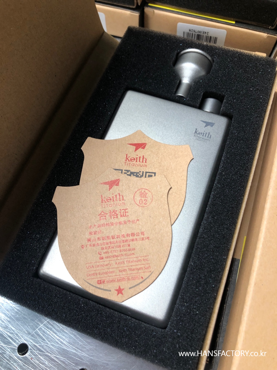 티타늄 재질의 작은 위스키 담는 플라스크에
