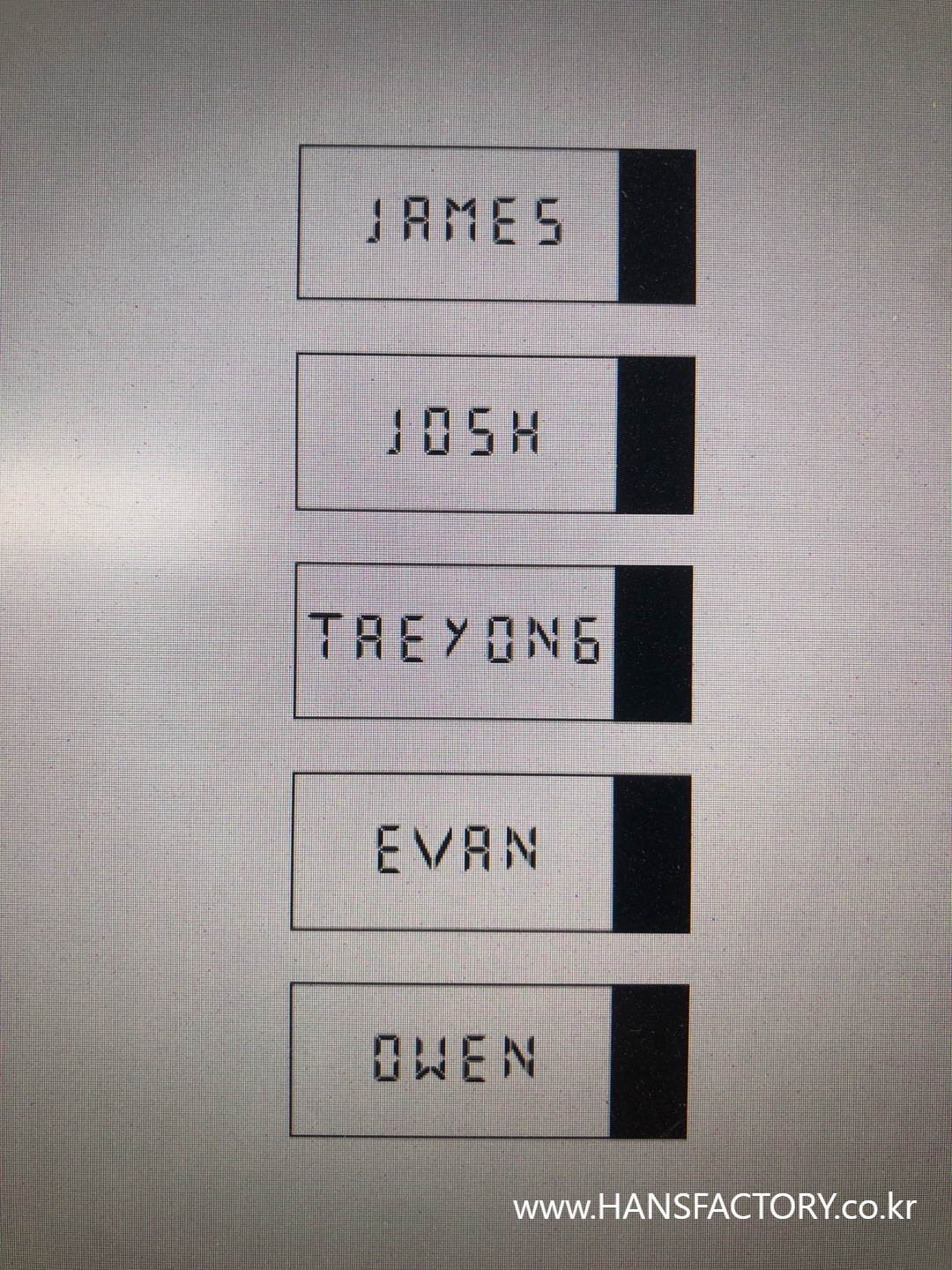 다섯 명의 이름과 원하는 폰트를 지정해 주셔서
