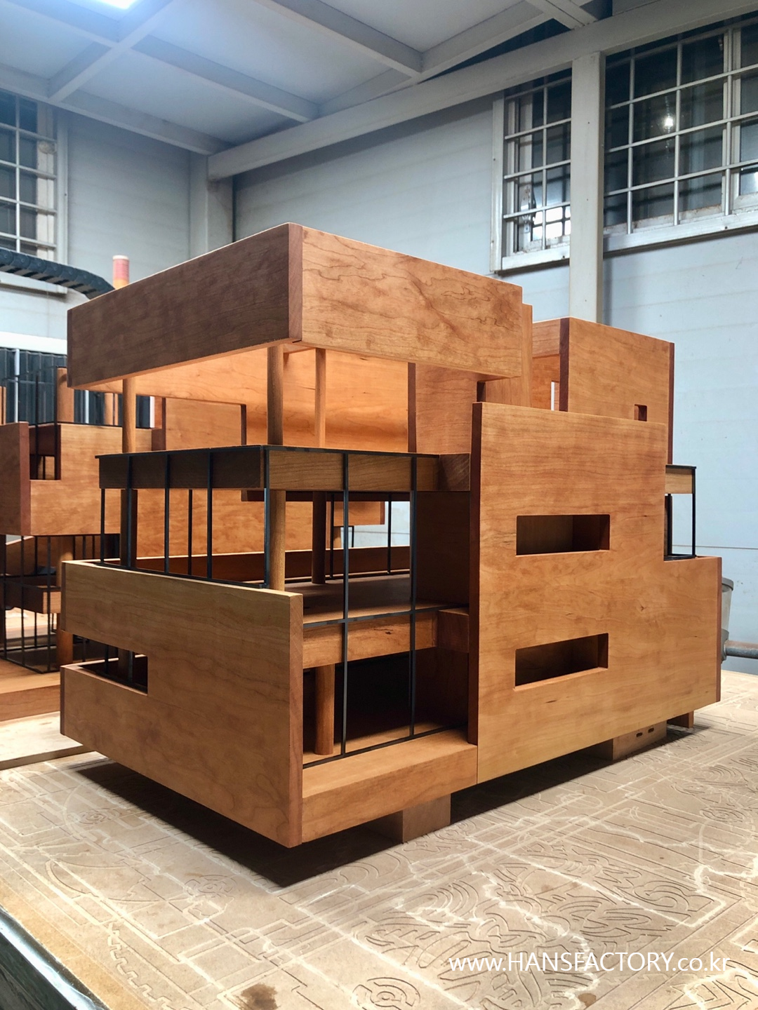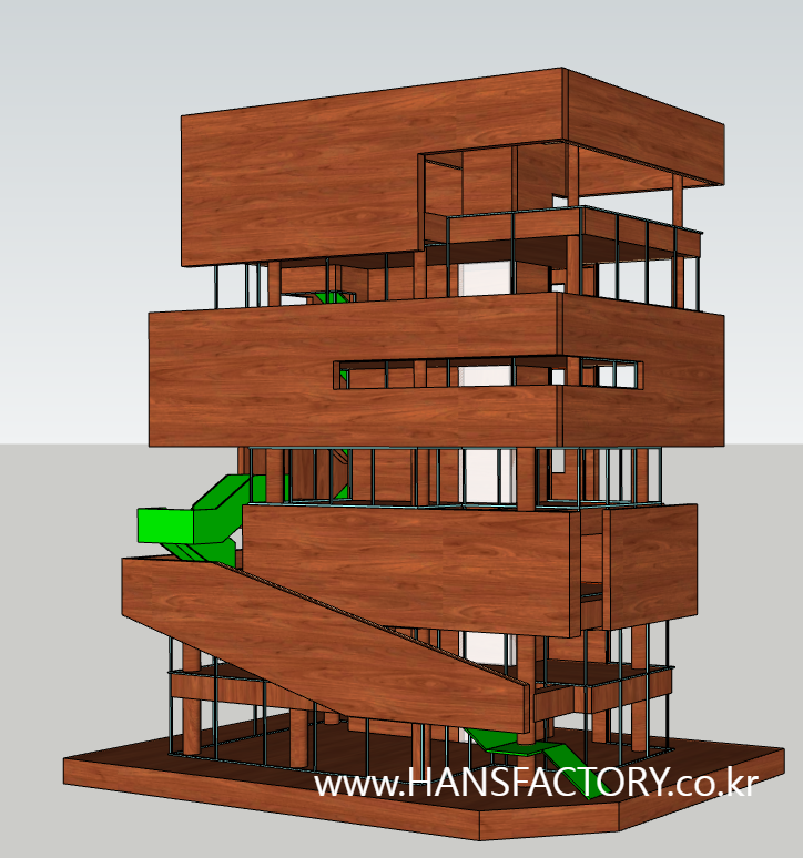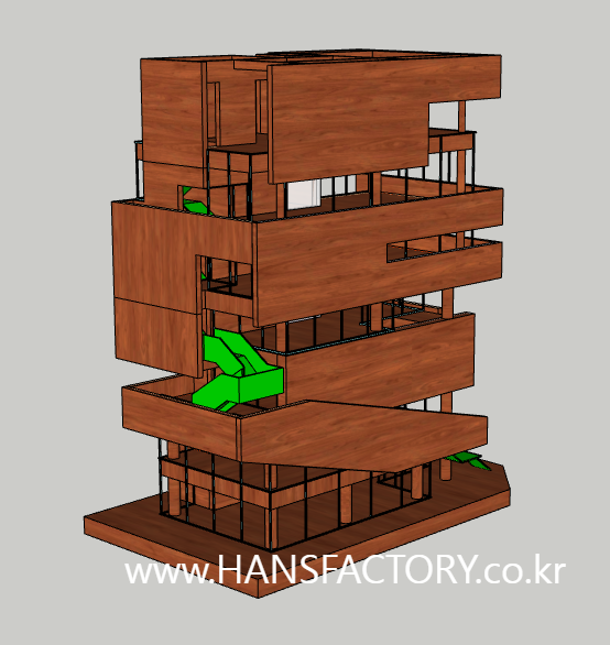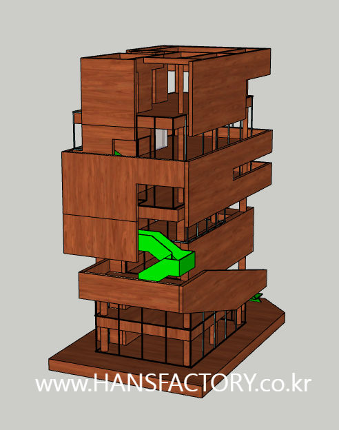 이 건물을 일반적인 건축 모형이 아닌 원목으로 표현을 하고 싶다는 요청이었어요^^;;
