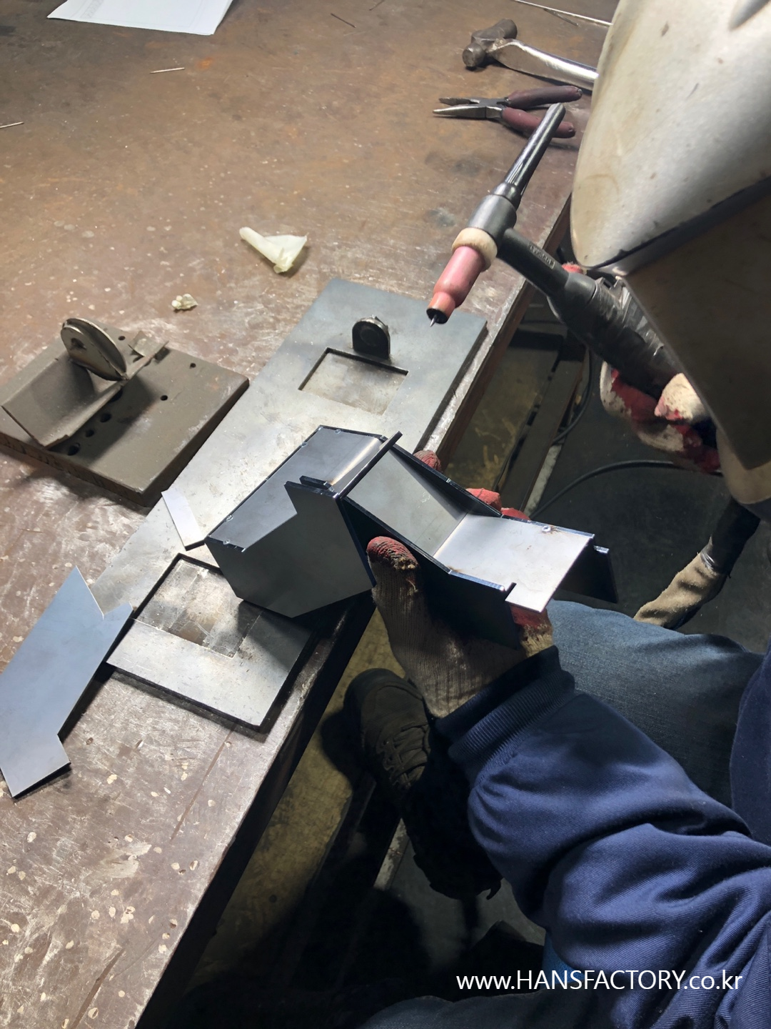 4mm짜리 철판을 재단해서 용접 작업으로 만들어 주었는데...