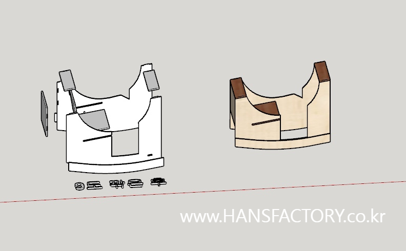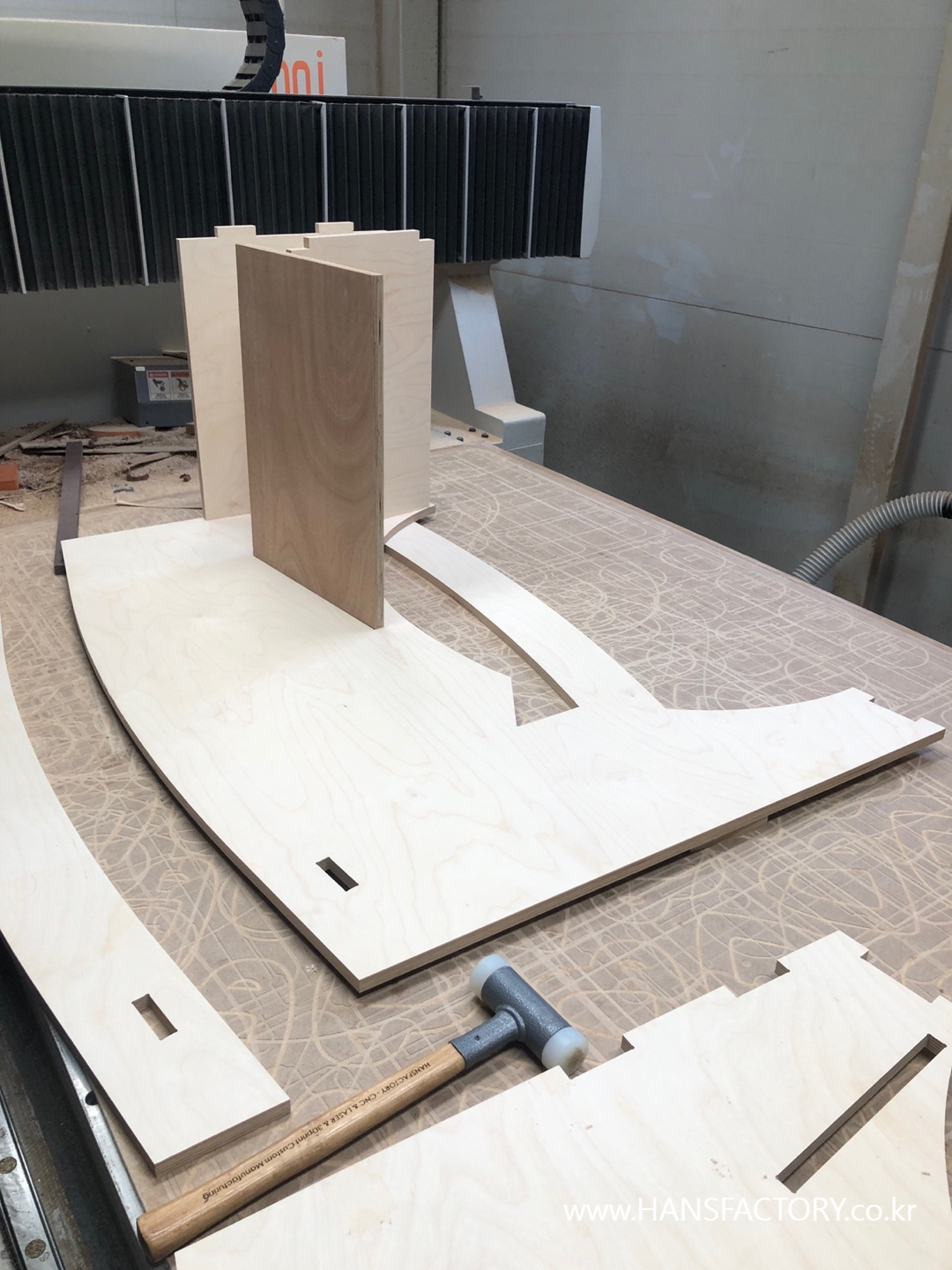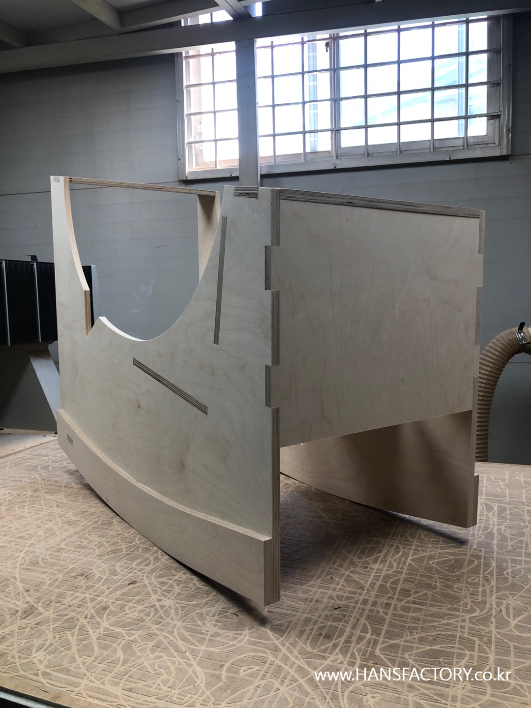 합판의 두께와 맞물리는 부분들에 맞춰 공차를 주었기 때문에