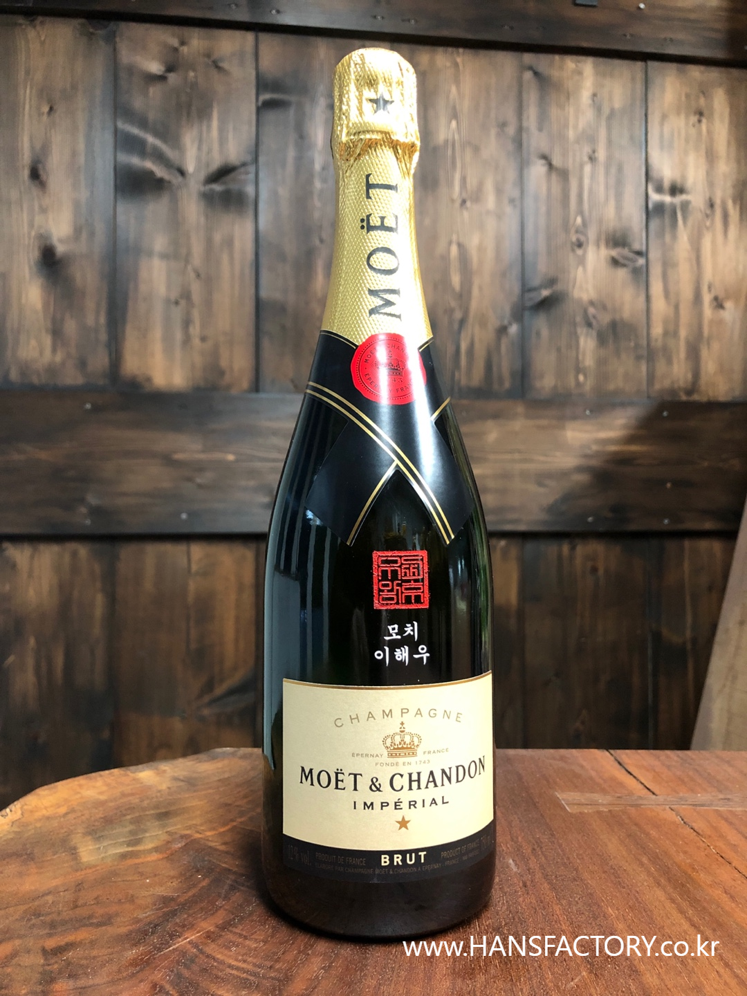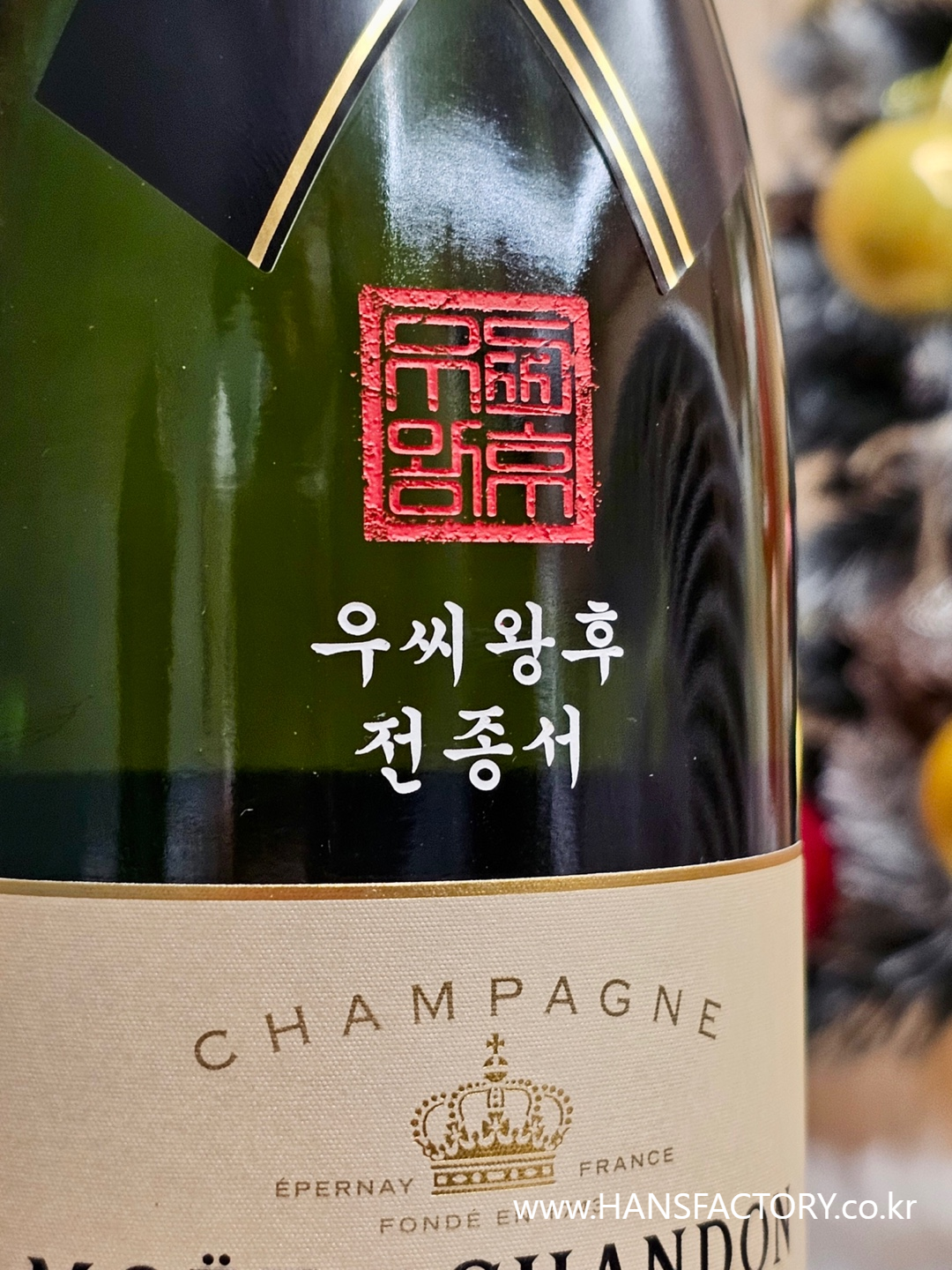 모엣샹동 샴페인에 커스텀 각인 작업을 의뢰받았습니다.