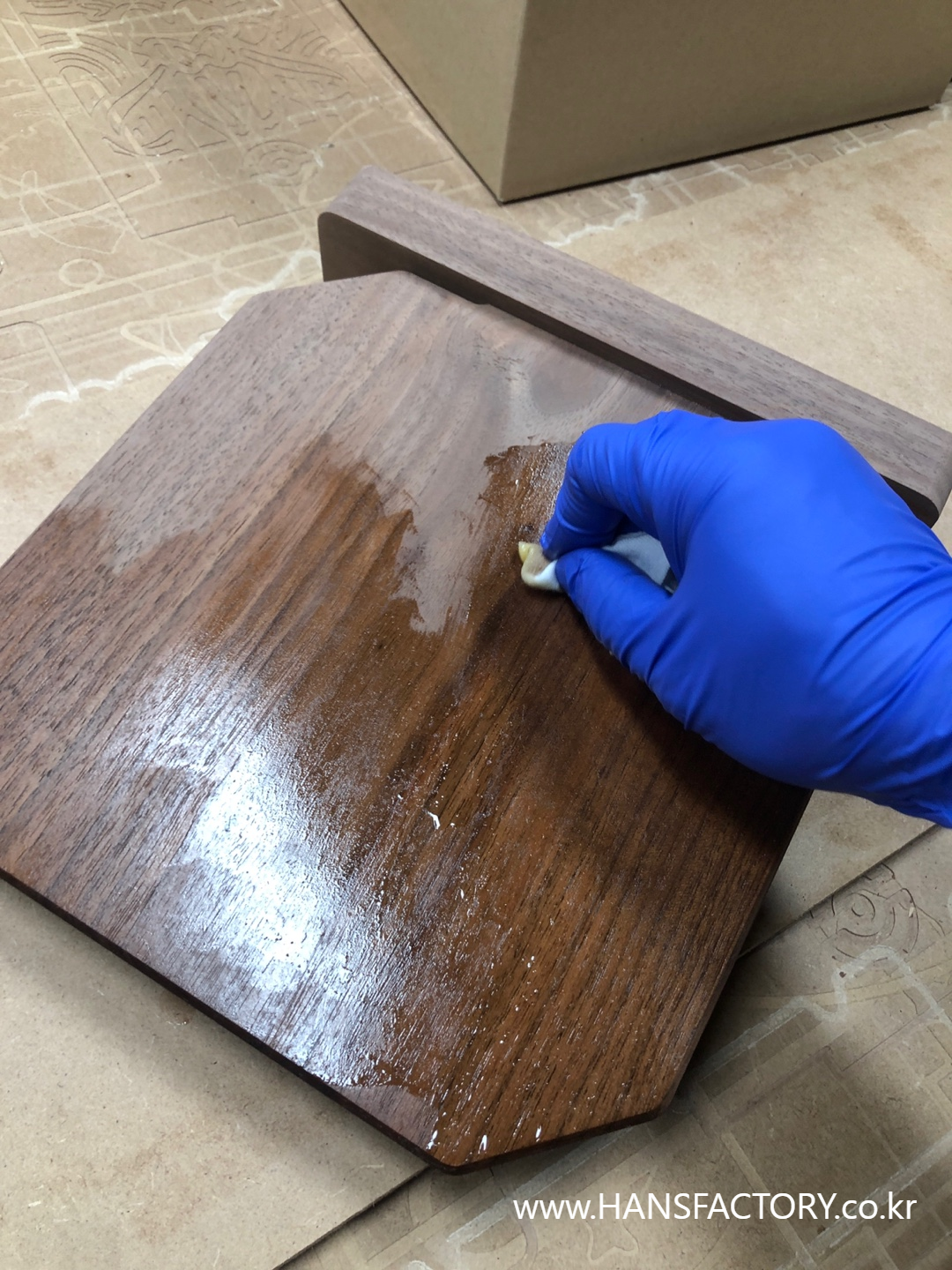 1차 건조가 되면 여러 차례 천연오일을 먹여주는 작업을 반복합니다.