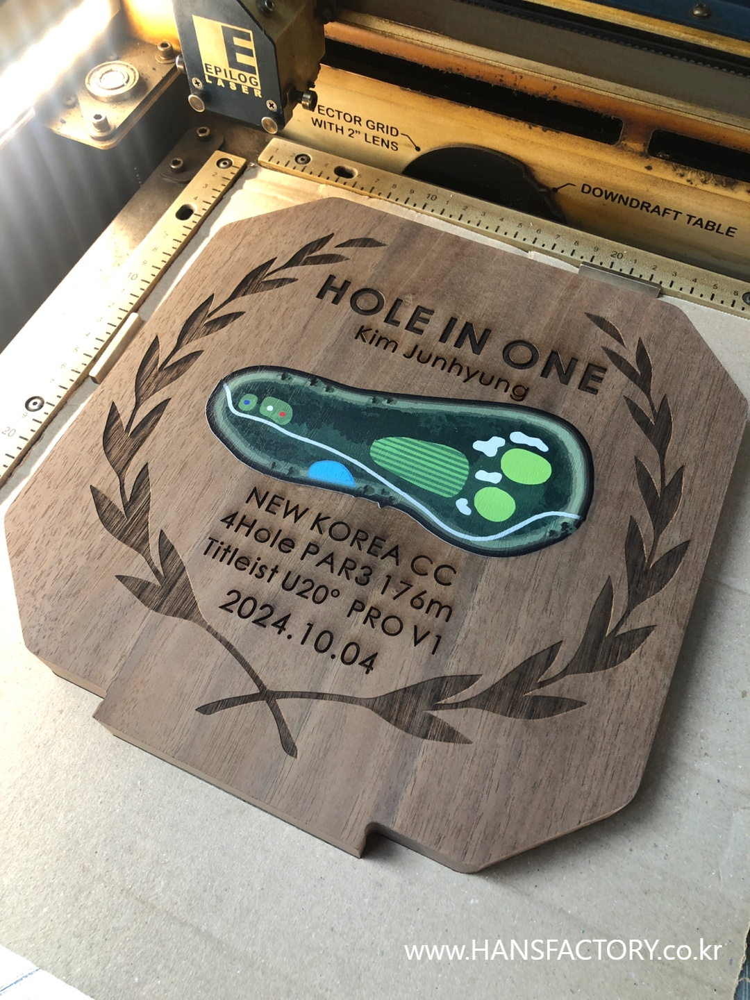 뉴코리아CC 홀인원 기념패 스페셜 오더 메이드, 월넛(호두나무) 원목