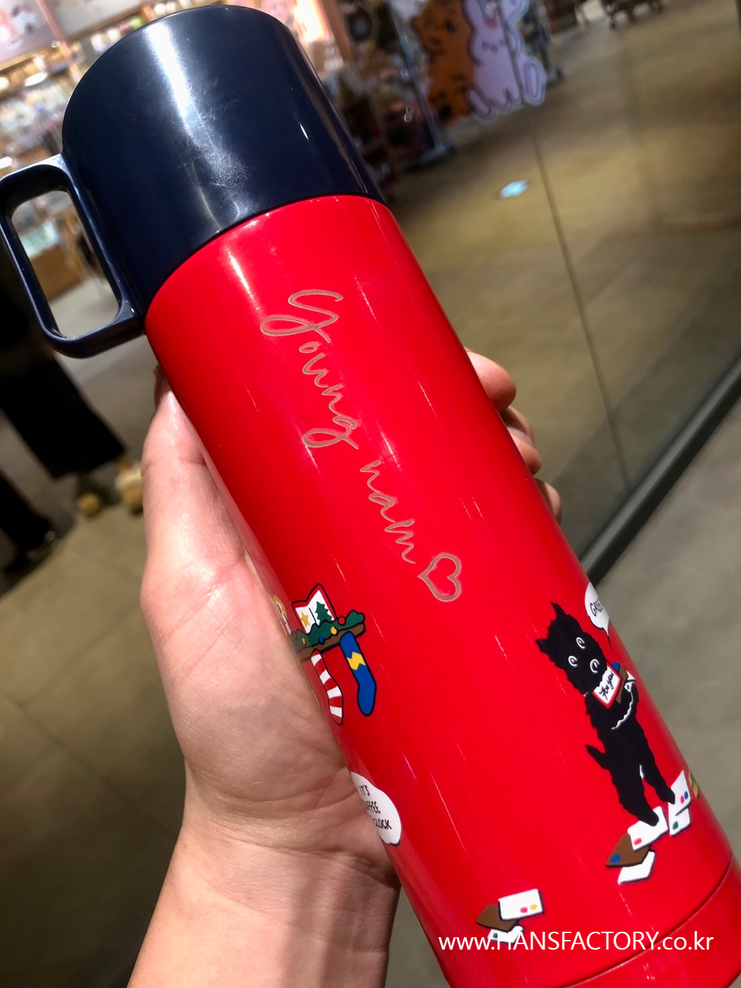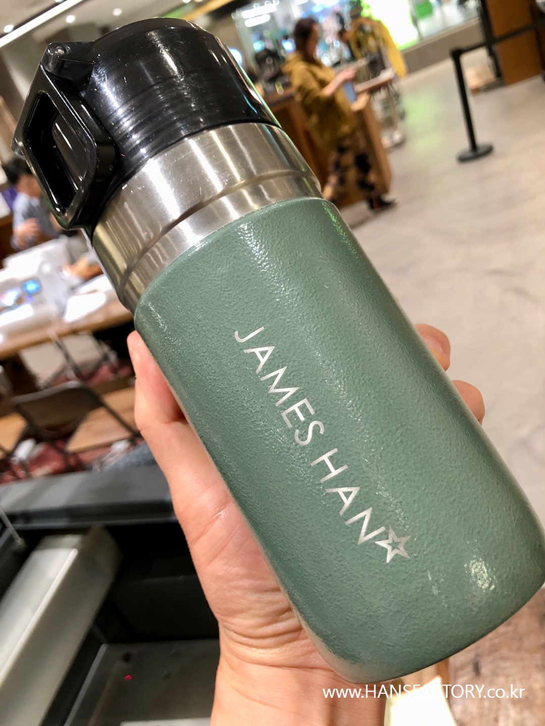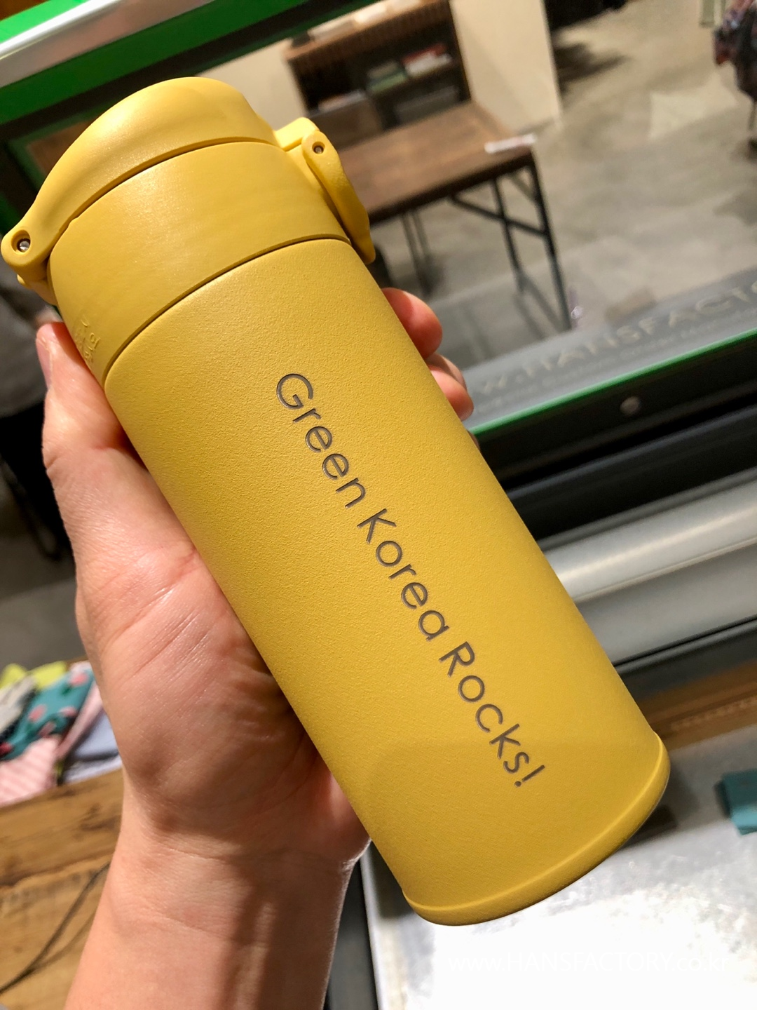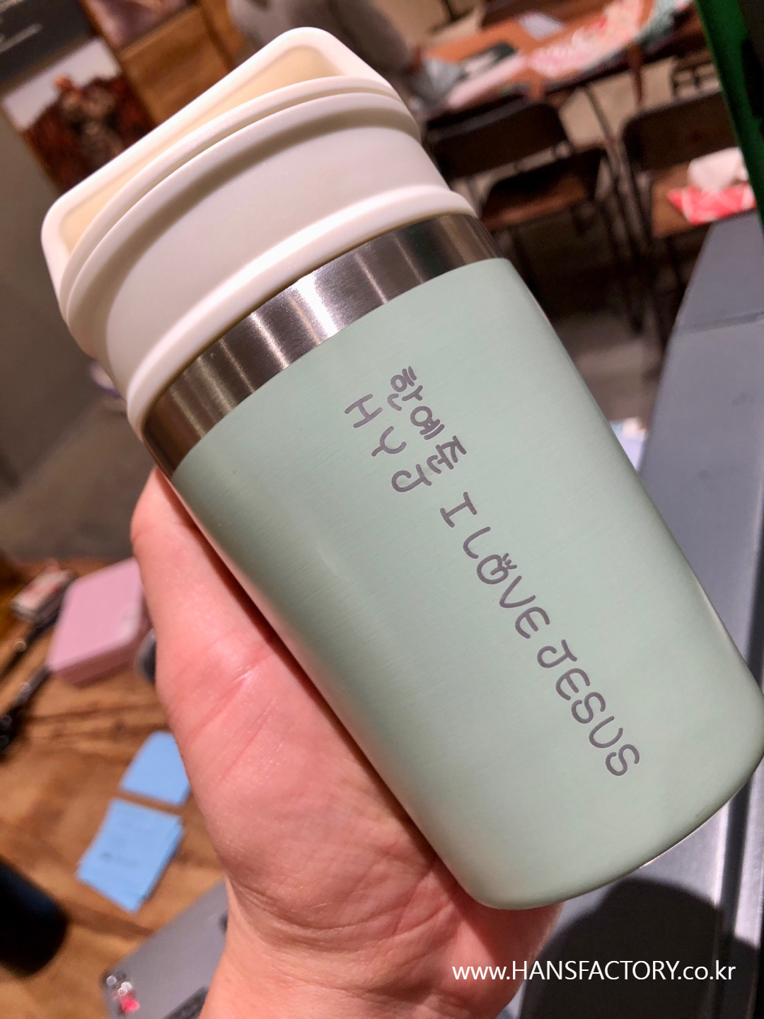 갖고 오신 텀블러에 원하는 이름이나 문구, 로고를 새겨 드렸습니다.