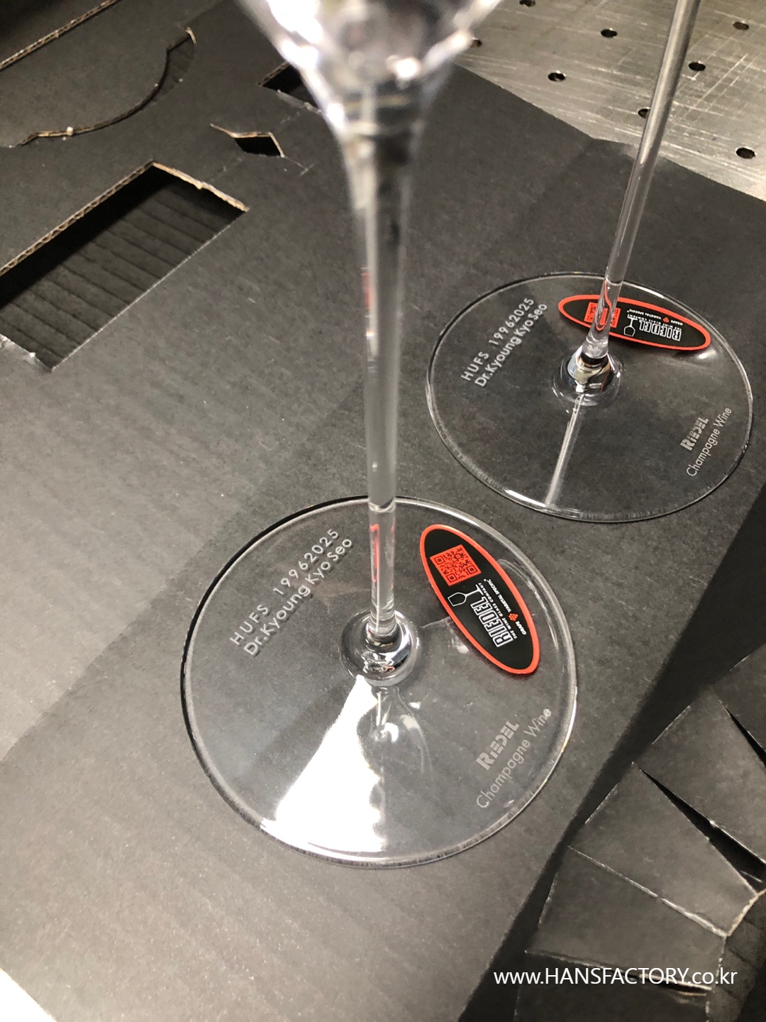 와인잔에 커스텀 각인 작업은 생각보다 많이 까다롭습니다.