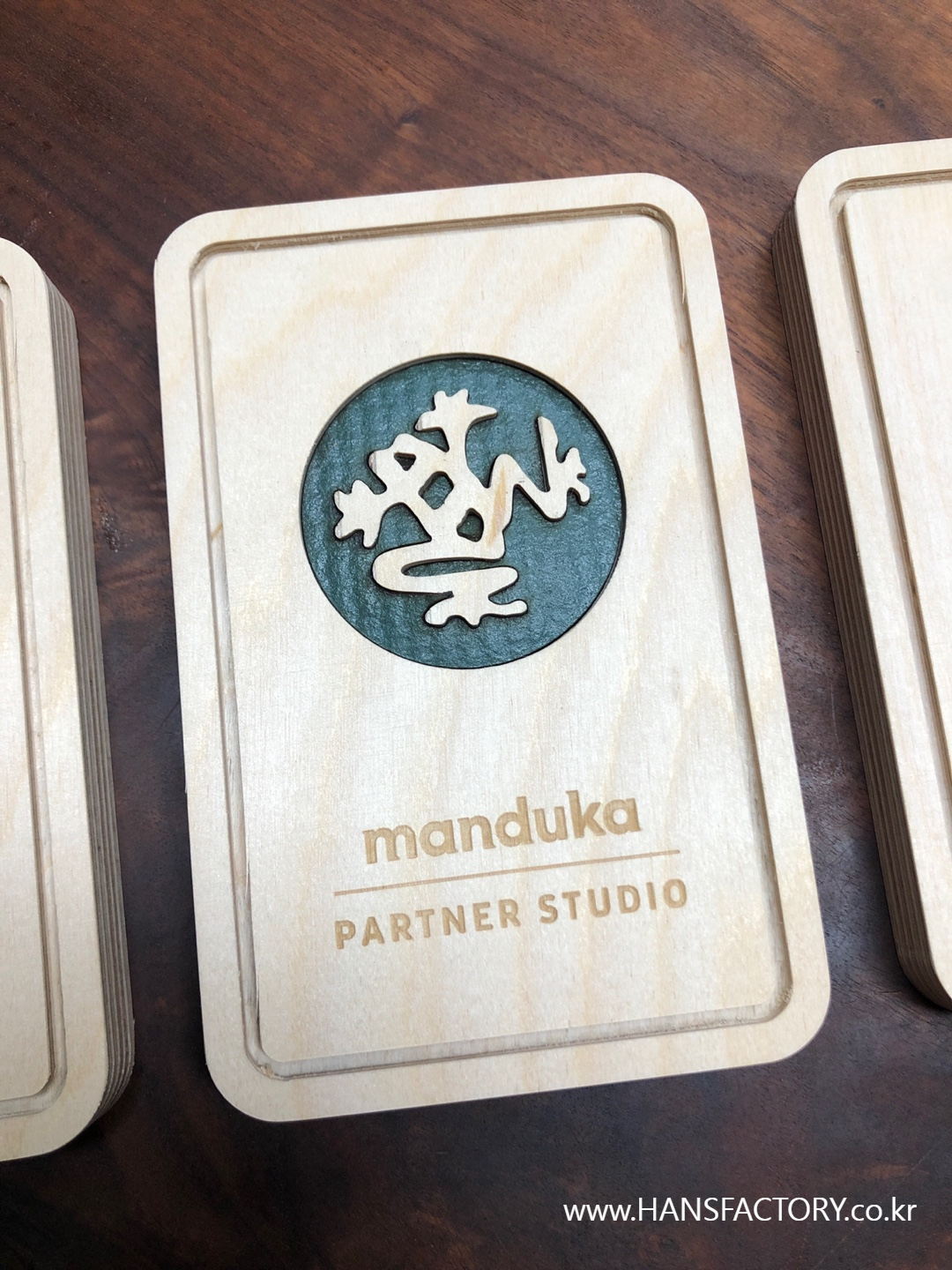 만두카 파트너 스튜디오 나무명패 제작 for MANDUKA KOREA