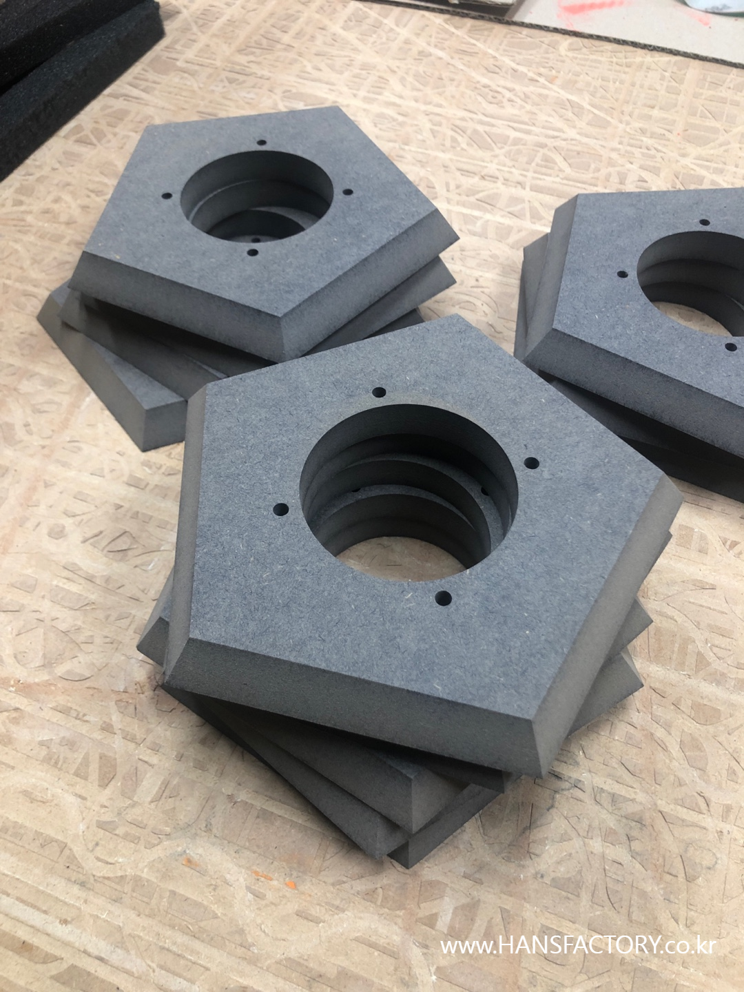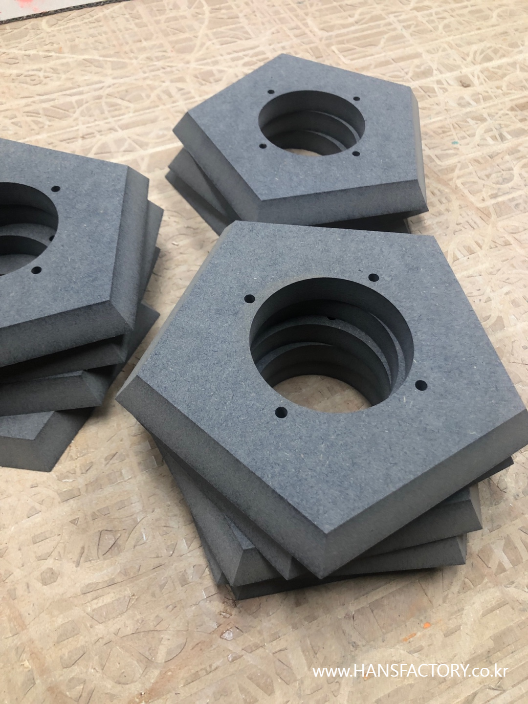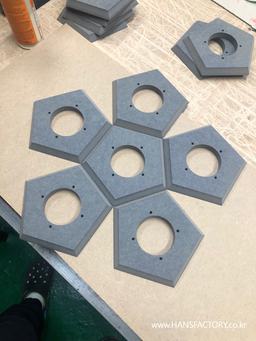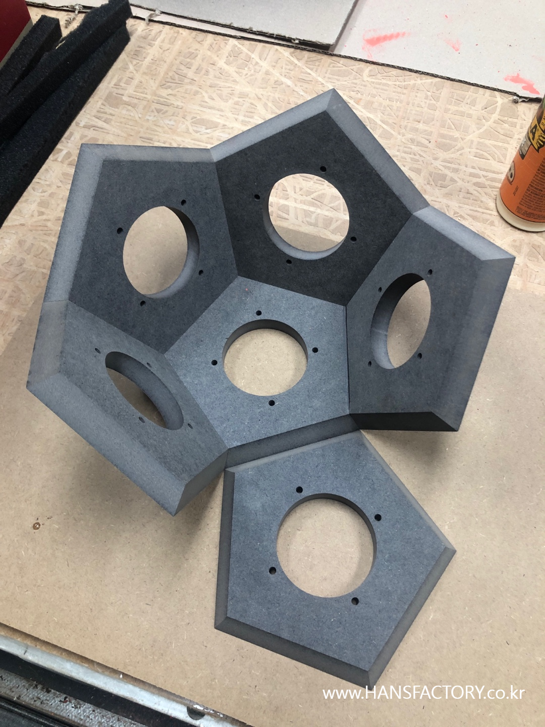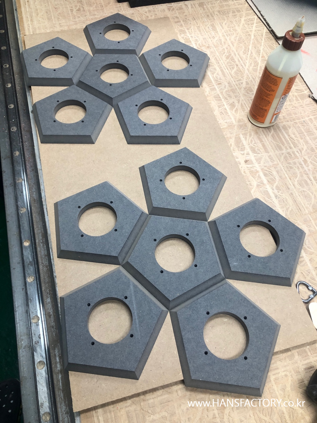 그래서 5 각형 접합부 각도를 정확히 계산해서 CNC가공해 주었습니다.