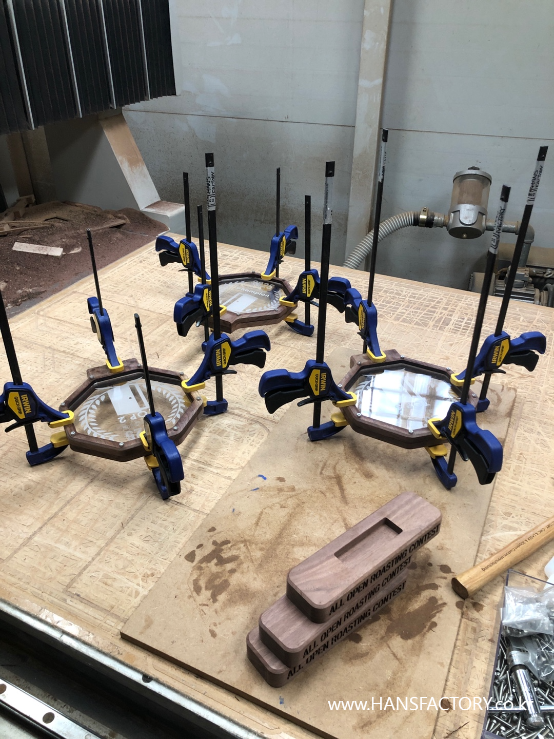 트로피 받침 부분도 가공, 각인까지 마무리했고,