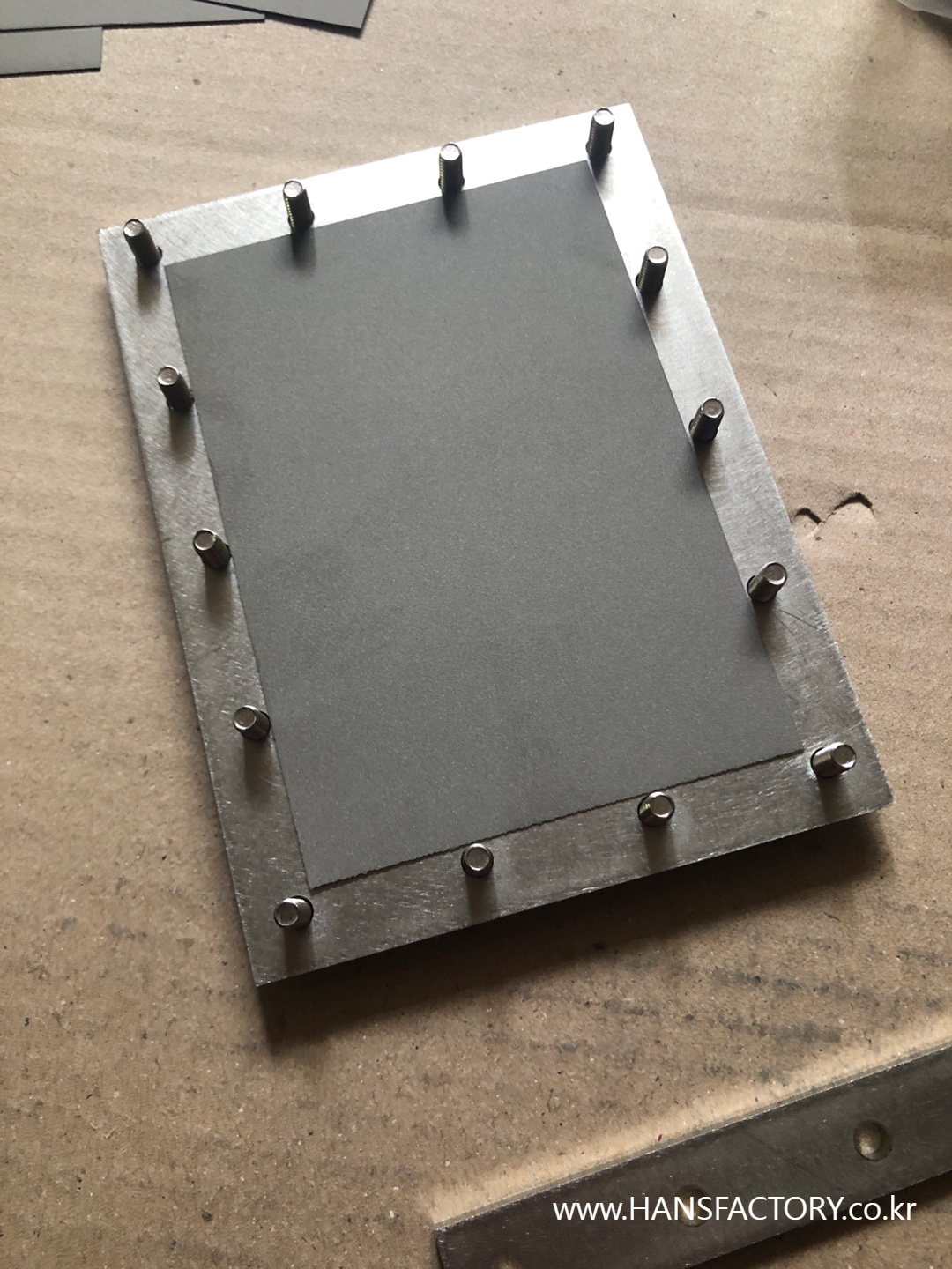 휘어지는 문제가 발견, 소재를 평평하게 유지해야 하는 이슈 발생