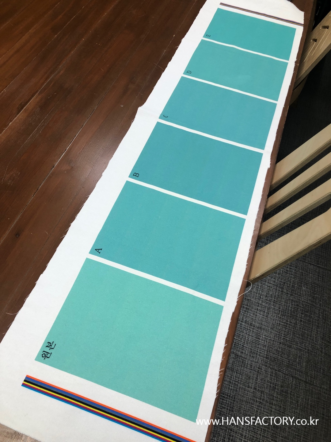 특수 원단을 해외에서 공수하고, 샘플 프린팅 작업을 거쳐서 빈백 샘플을 만들어 보았습니다.