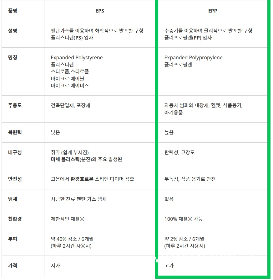 복원력 좋고, 냄새 없고, 100% 재활용 가능한 친환경 EPP로 구입해서 준비합니다.