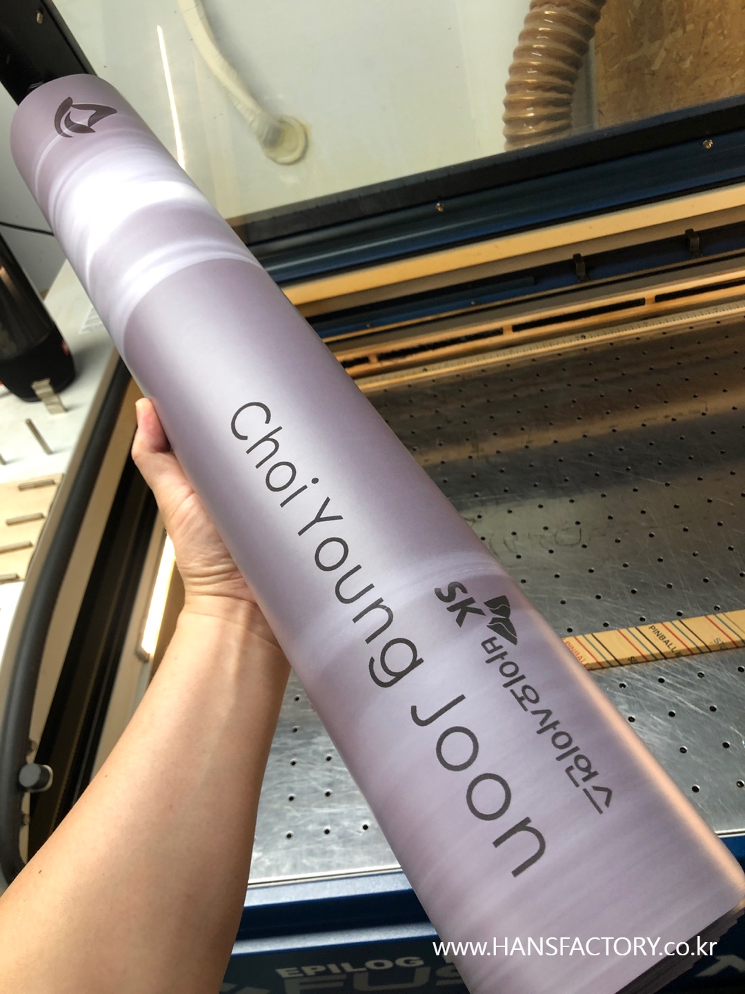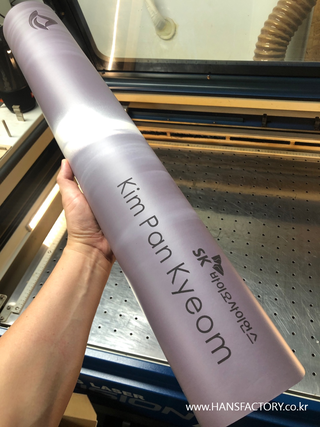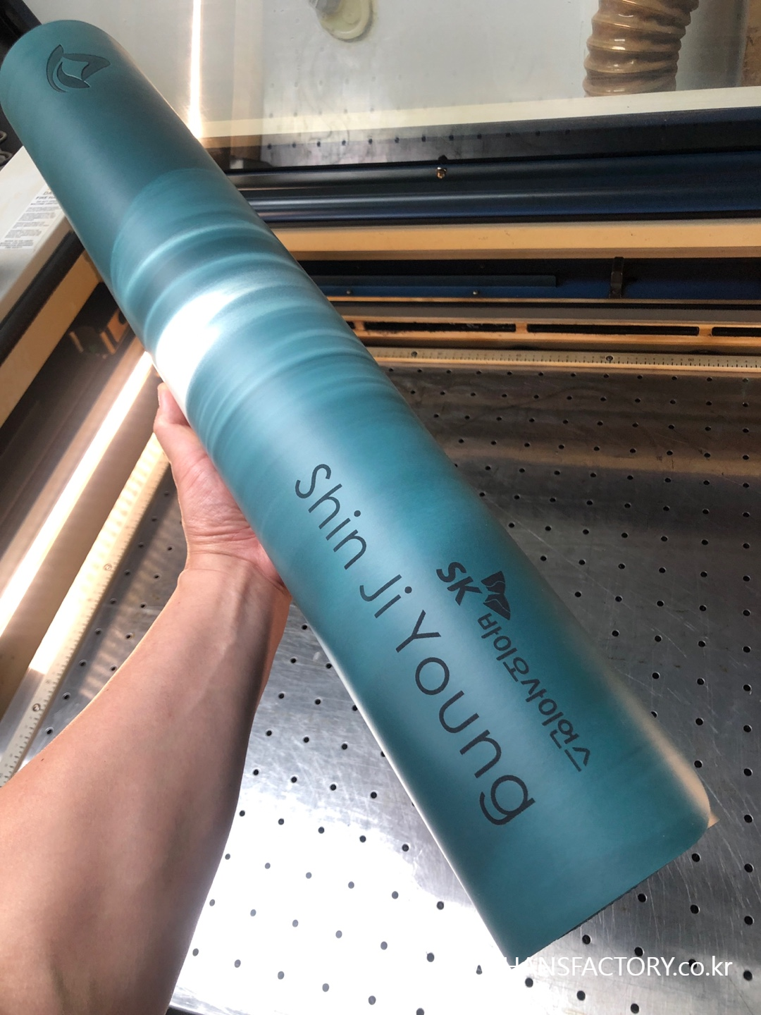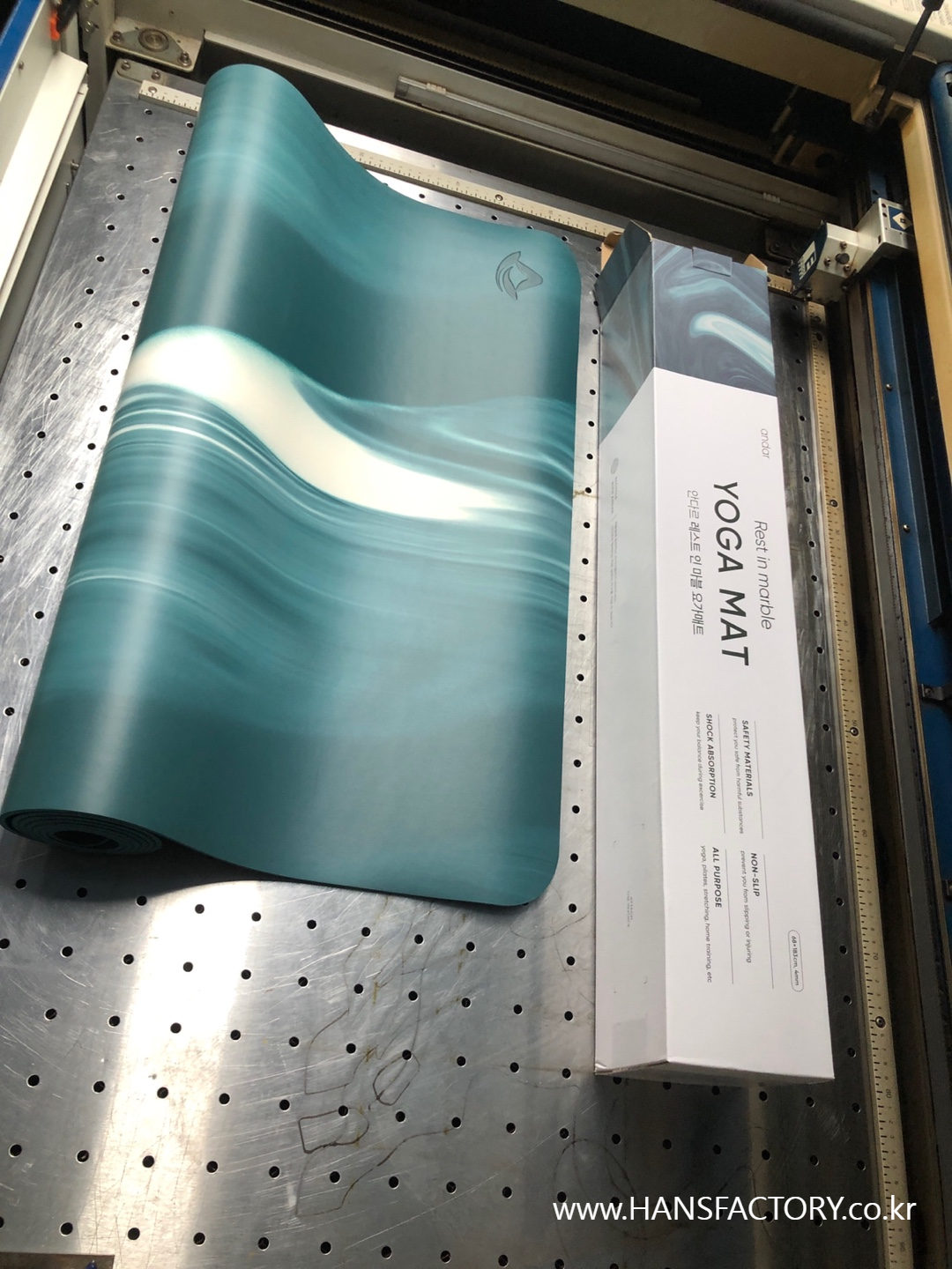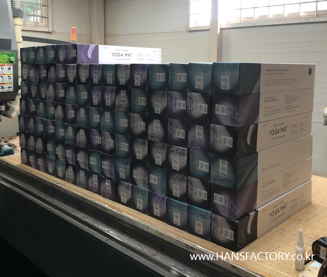 크기와 디자인 협의 후 요가매트 한 장 한 장 각인 시작!!