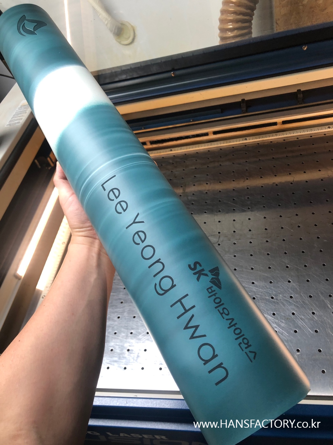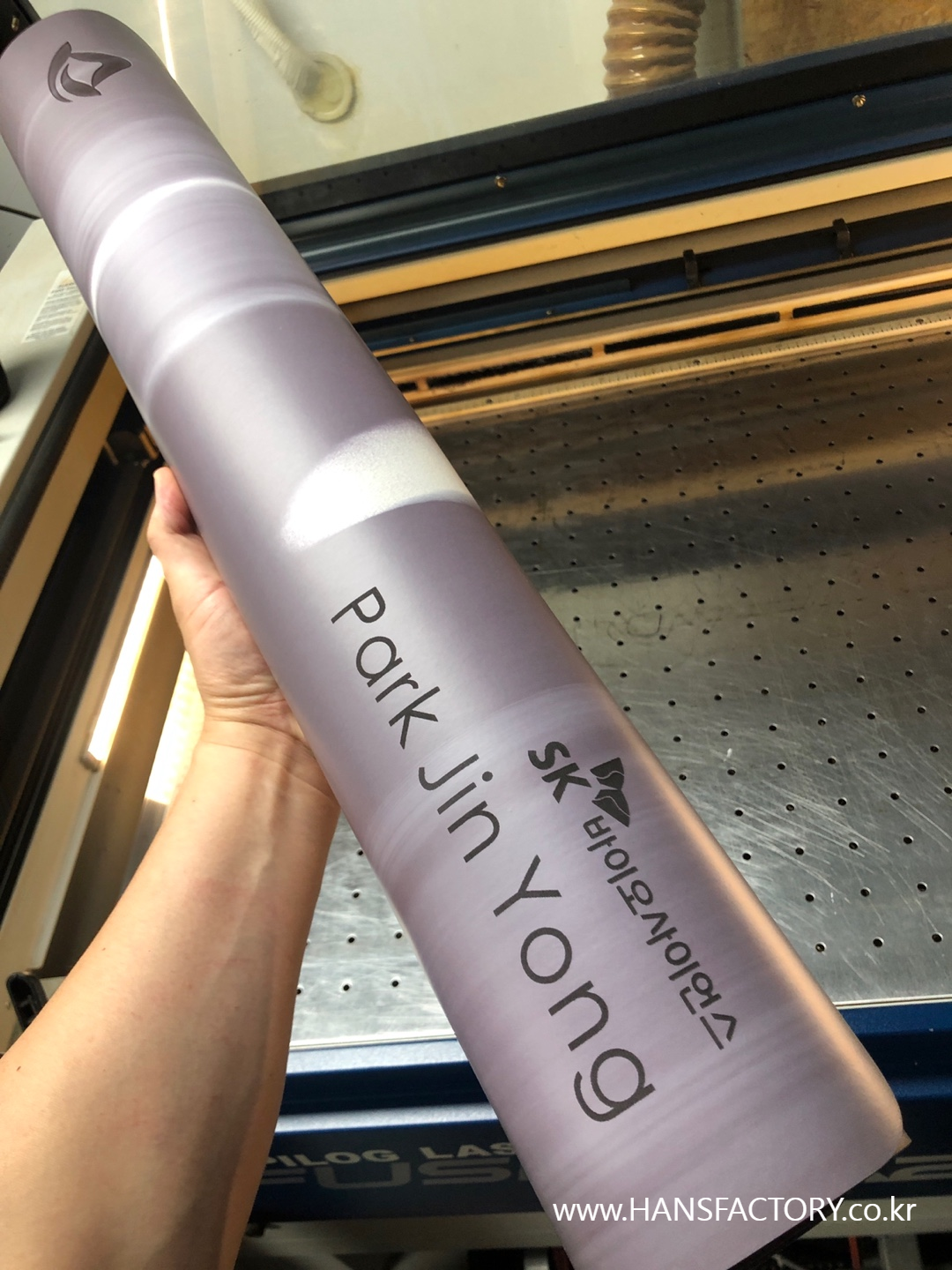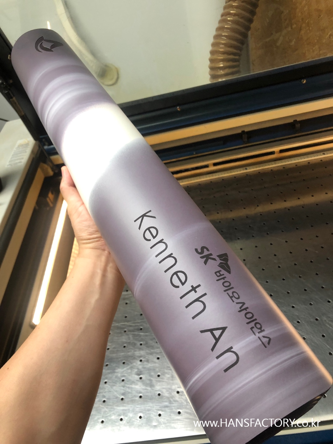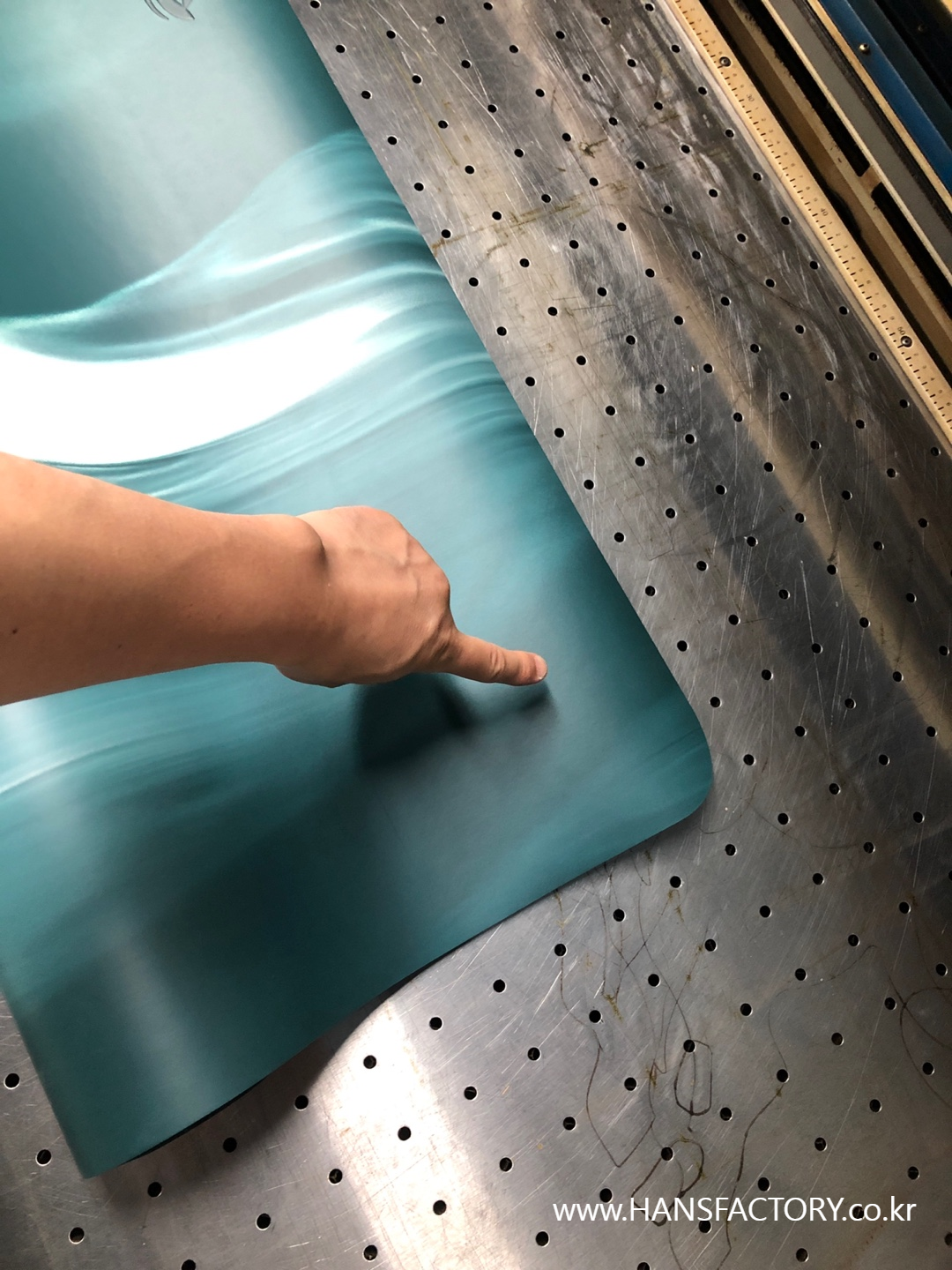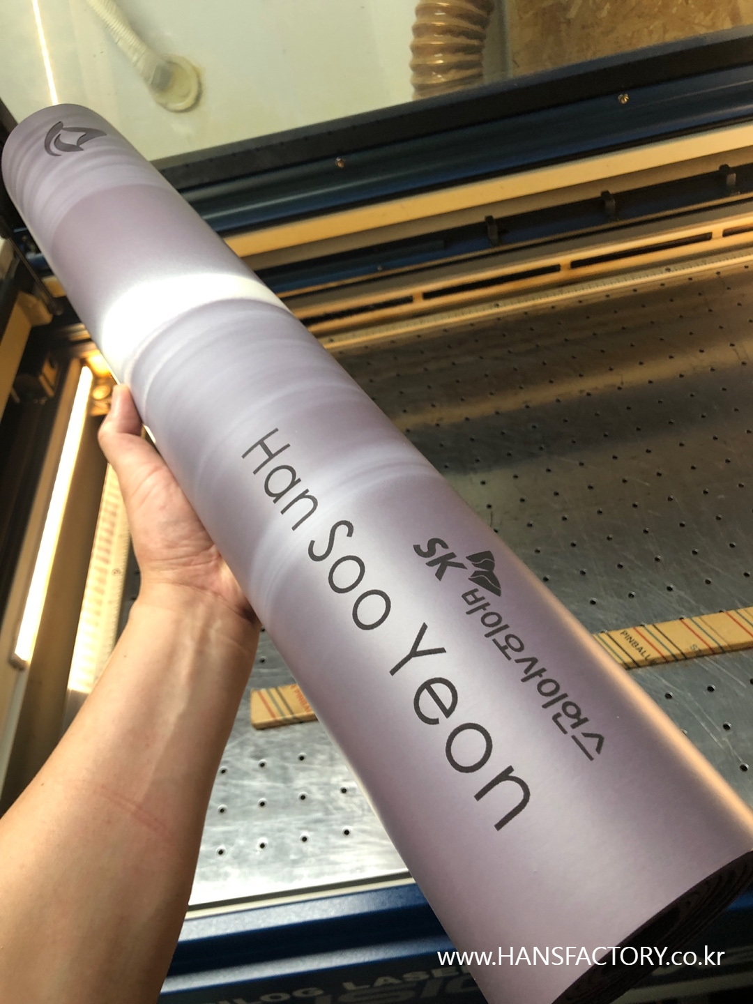 크기와 디자인 협의 후 요가매트 한 장 한 장 각인 시작!!