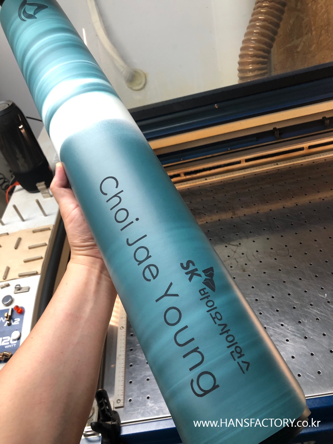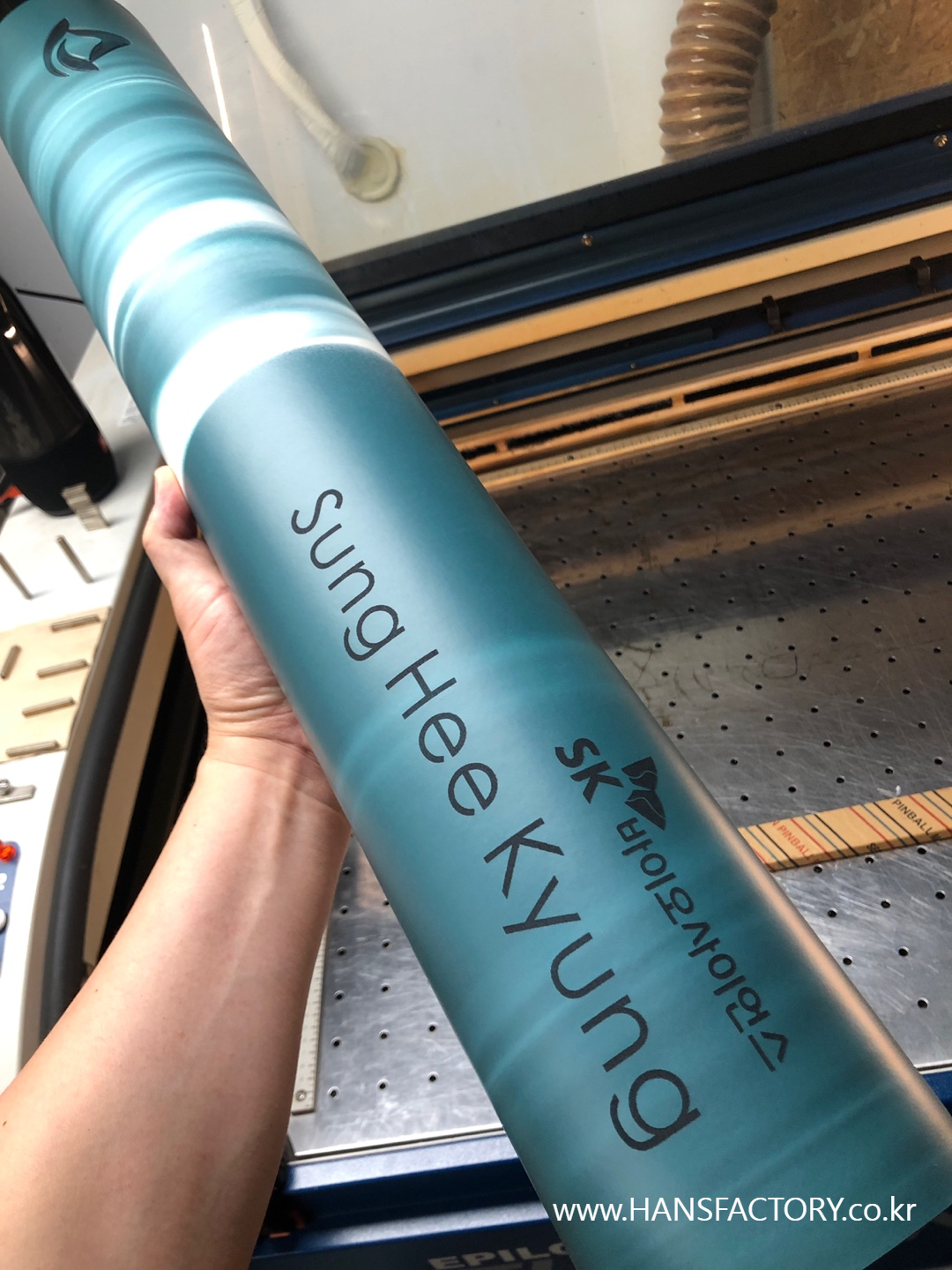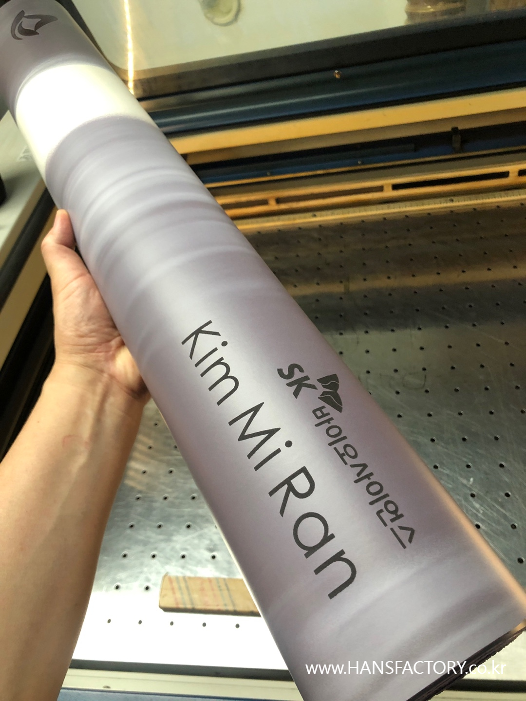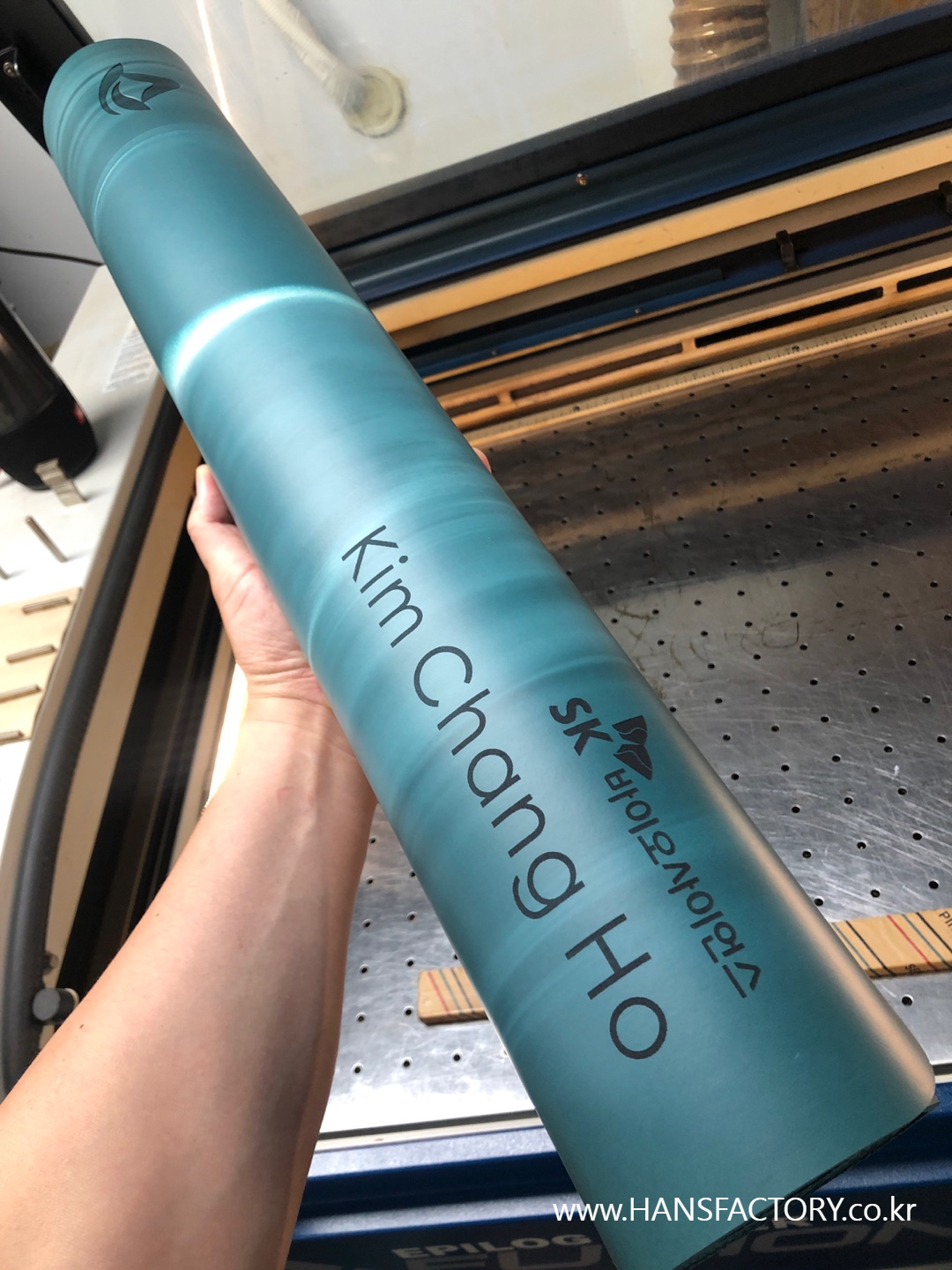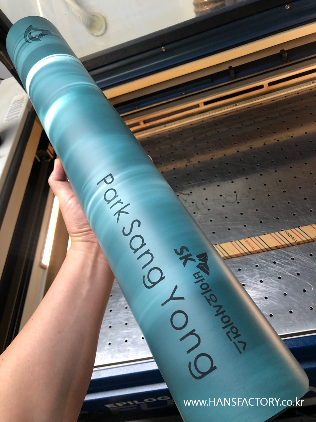 크기와 디자인 협의 후 요가매트 한 장 한 장 각인 시작!!