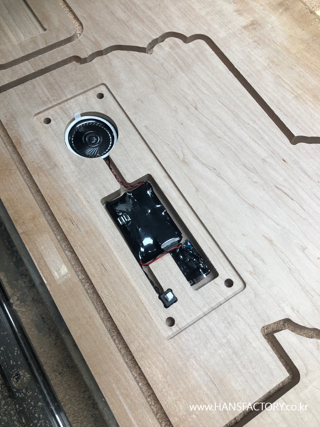 기념패 후면에 스피커, 배터리, 메모리, on/off 스위치, 충전단자가 수납되도록