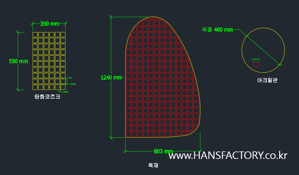 목재 + 코르크 + 금속 + 아크릴로 구성된 작품 제작을 문의해 주셨어요