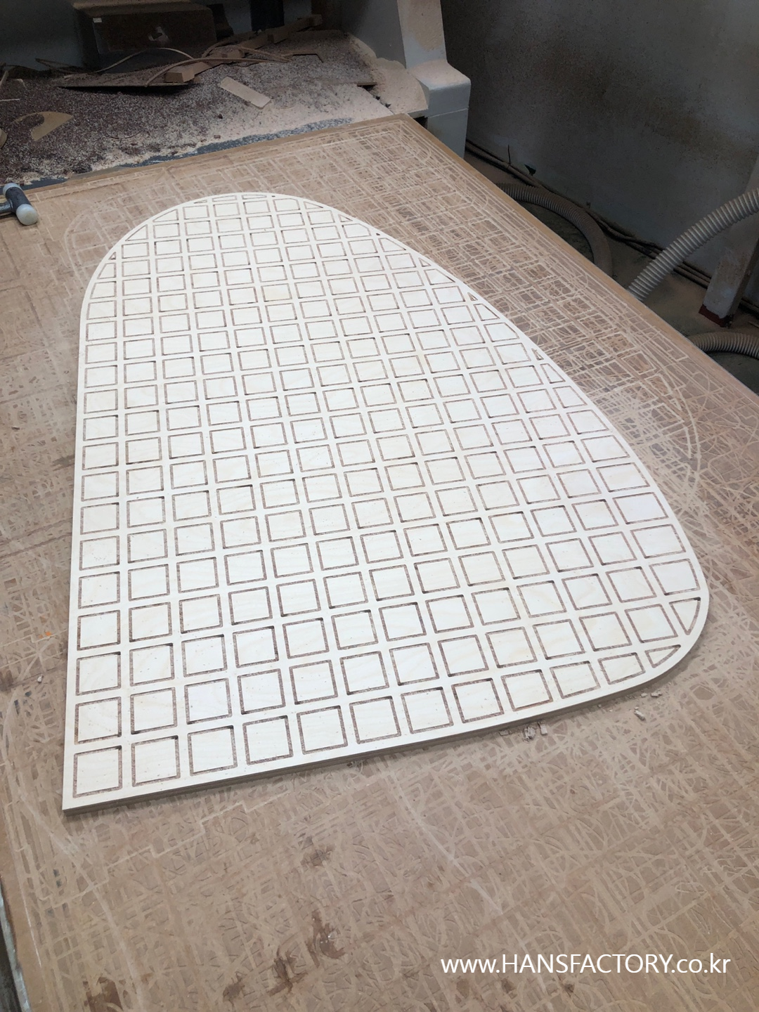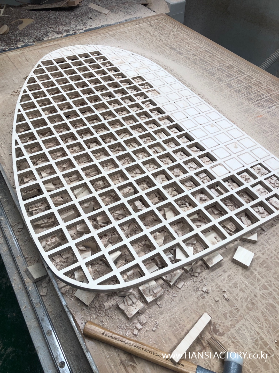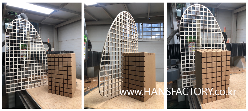세워지는 파티션 부분은 자작나무 합판재를 CNC가공으로 만들어 봅니다.