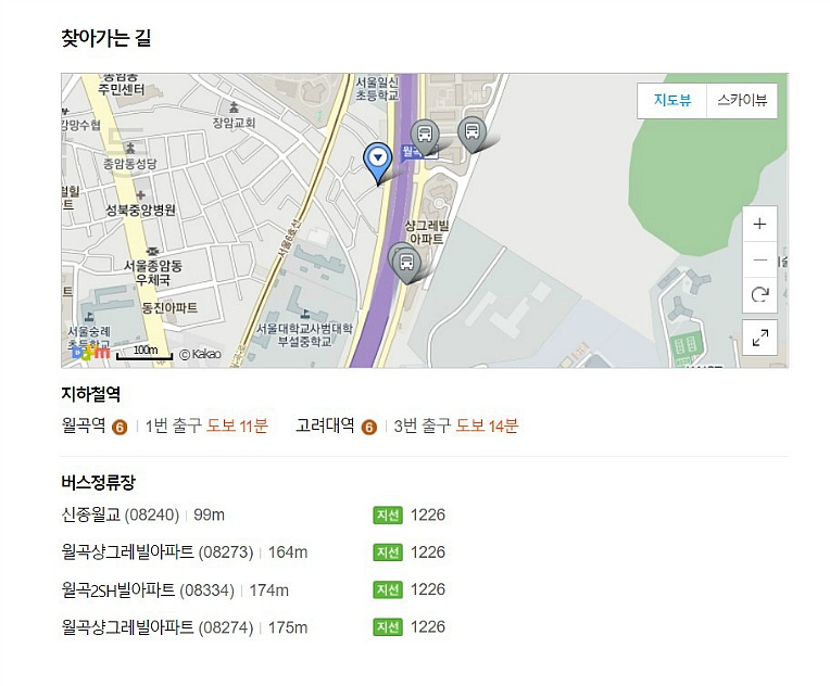 가장 가까운 역은 6호선 월곡역 (5번출구 에서 약 630m) 와 고려대역 (3번출구 에서 약 880m) 입니다.